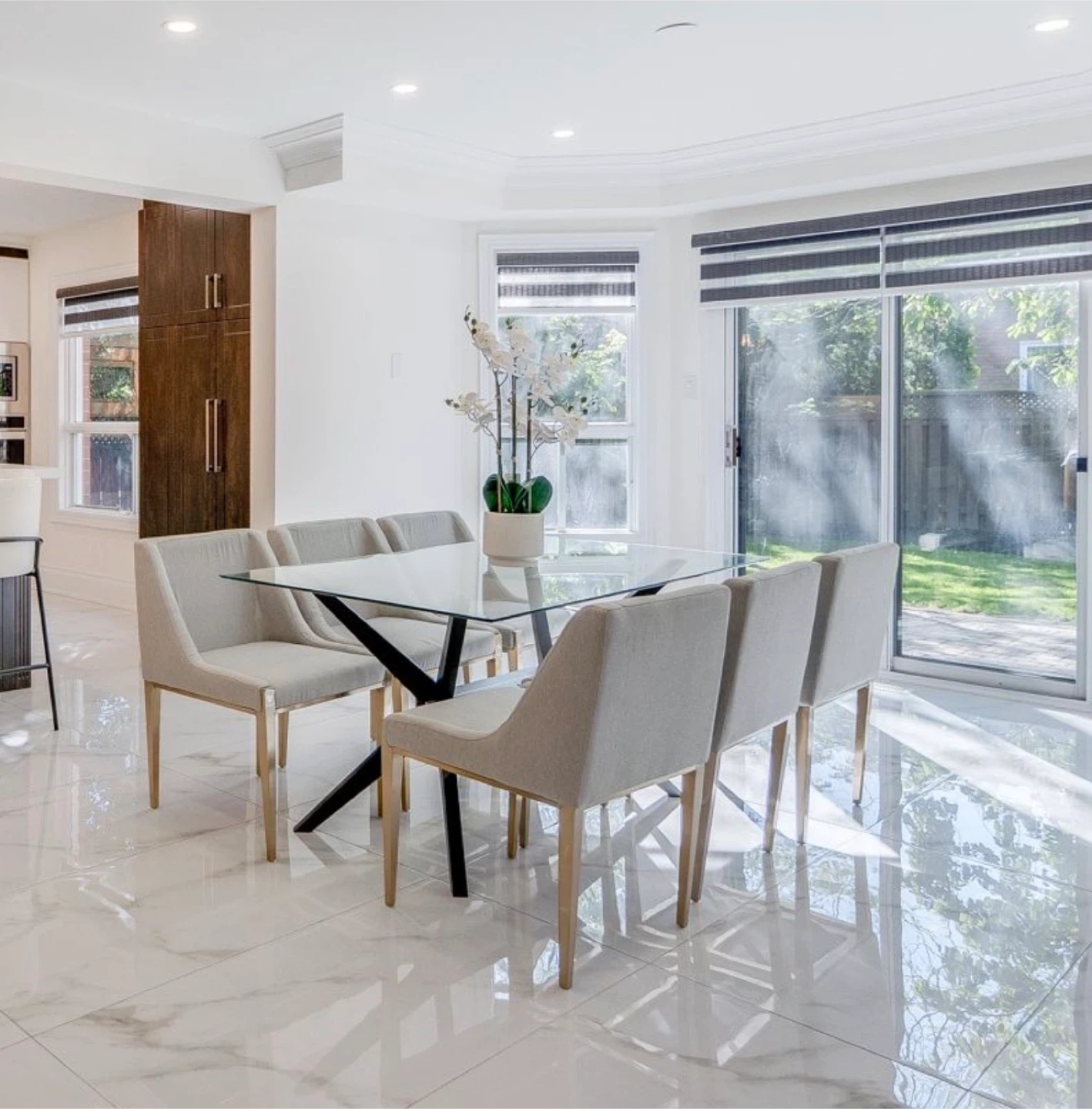 • dining table with white chairs – $399