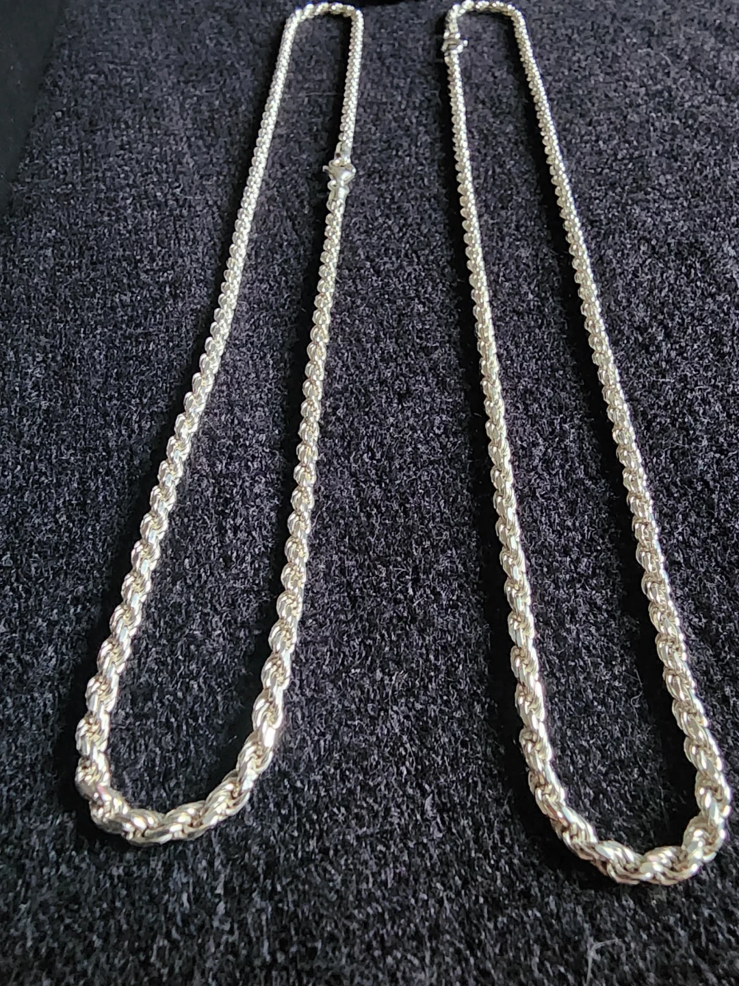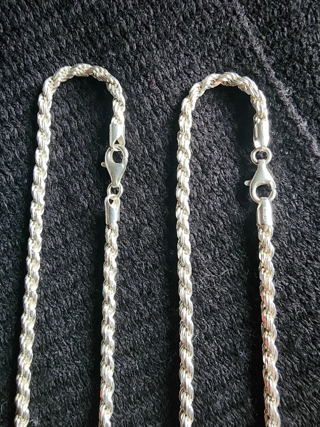 Buy & SellItalian Diamond Cut Rope NecklacesItalian Diamond Cut Rope Necklaces$1202 Brand New (925) Italy Sterling Silver Diamond Cut Italian Rope Necklaces. Both 20" in length, 3mm in width, 18.96 grams $120 each.WHERE TO MEETCheck LocationView MapSELLERverifiedRZOrchard640 reviews0 chats·0 favorites·10 viewsSEND CHAT TO SELLERHi RZ! I’m interested in your listing.Hi RZ! I’m interested in your listing.Get the Karrot app to chatSign In to chat