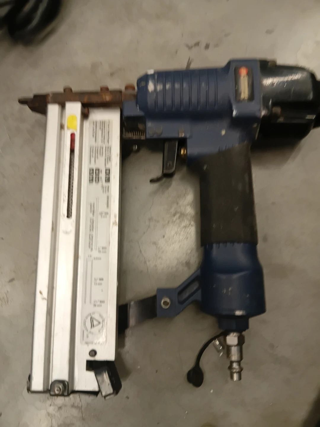 Pneumatic brad nailer for your fastening needs. Features include a magazine capacity and adjustable depth.