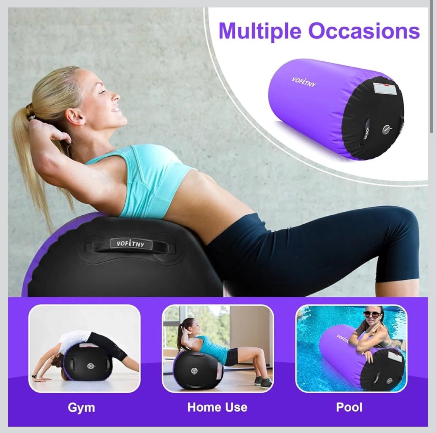 This Vofitny air barrel is perfect for gymnastics training and home use. It's durable, non-slip, and lightweight for easy portability. Noise reduction and no-leak features ensure a great experience.