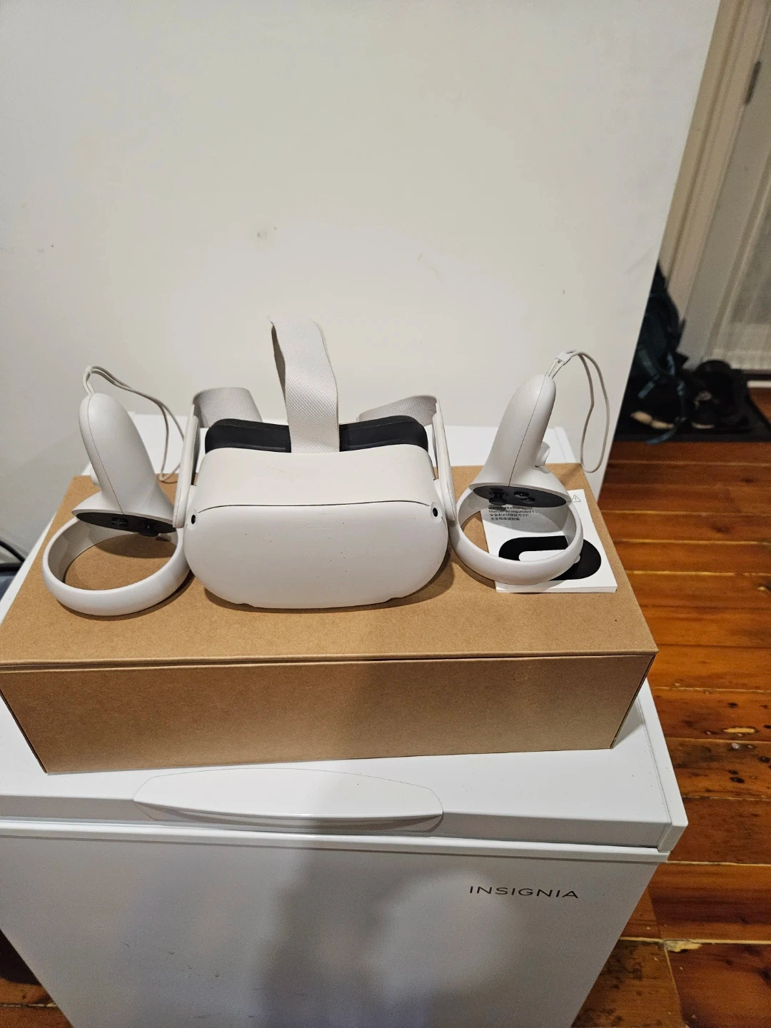 This is the Oculus Quest 2 VR headset. It's a standalone device that offers immersive virtual reality experiences. Included are the two motion controllers for interactive gameplay. 128 GB Storage, lightly played.