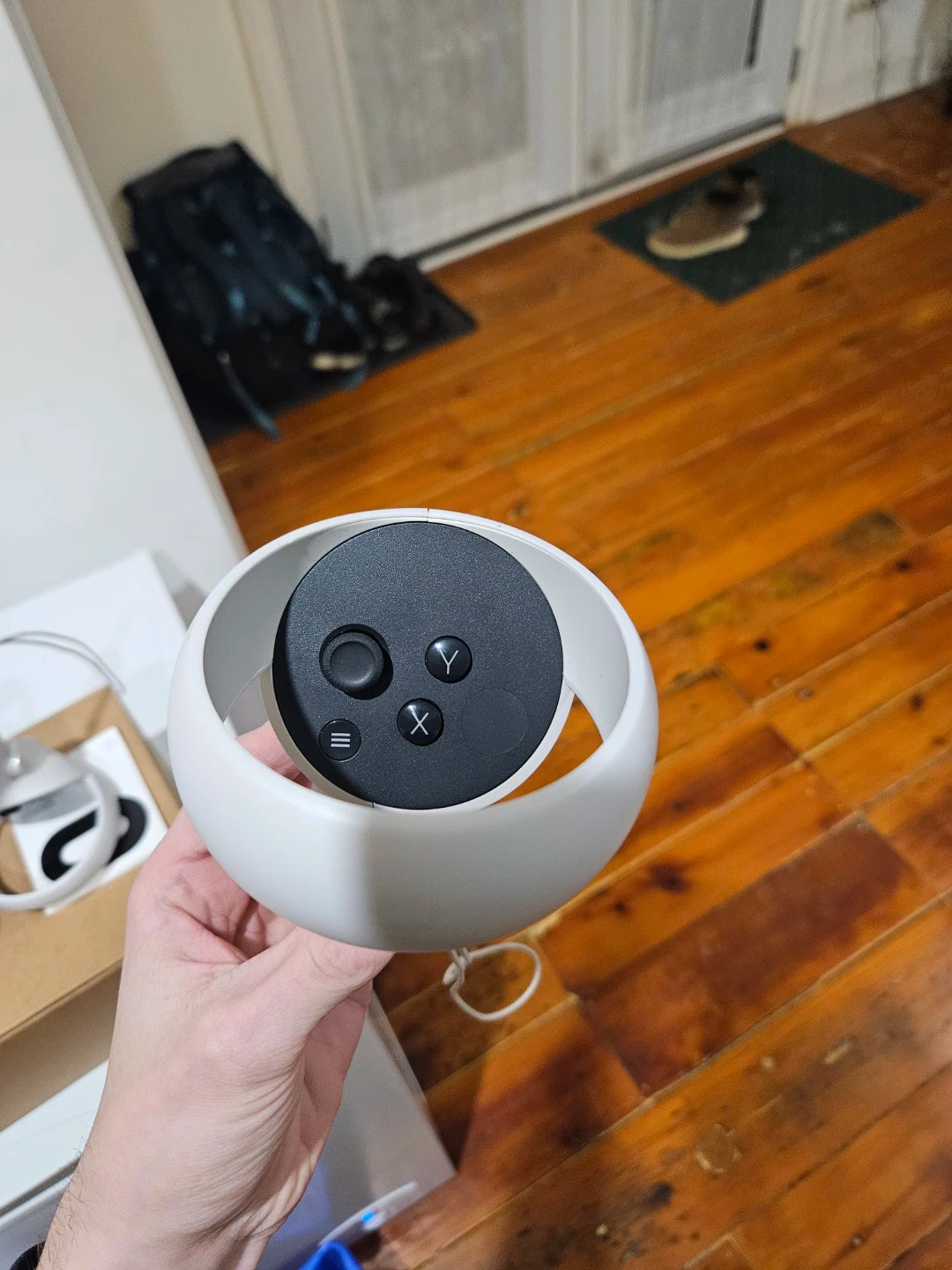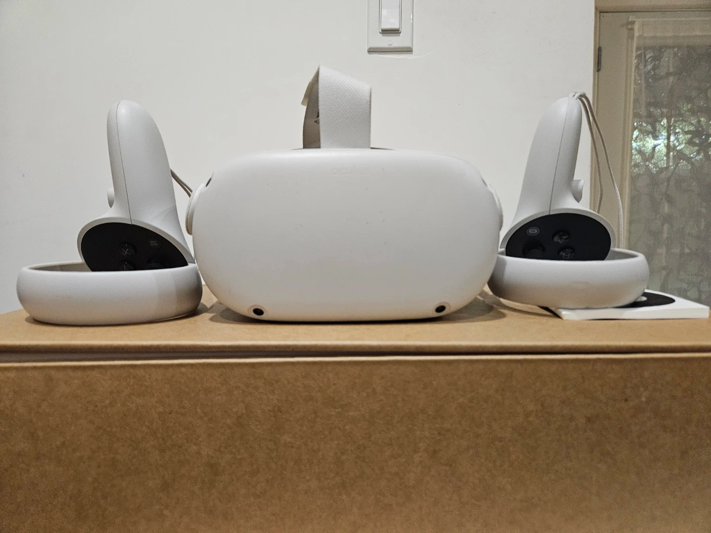 This is the Oculus Quest 2 VR headset. It's a standalone device that offers immersive virtual reality experiences. Included are the two motion controllers for interactive gameplay. 128 GB Storage, lightly played.