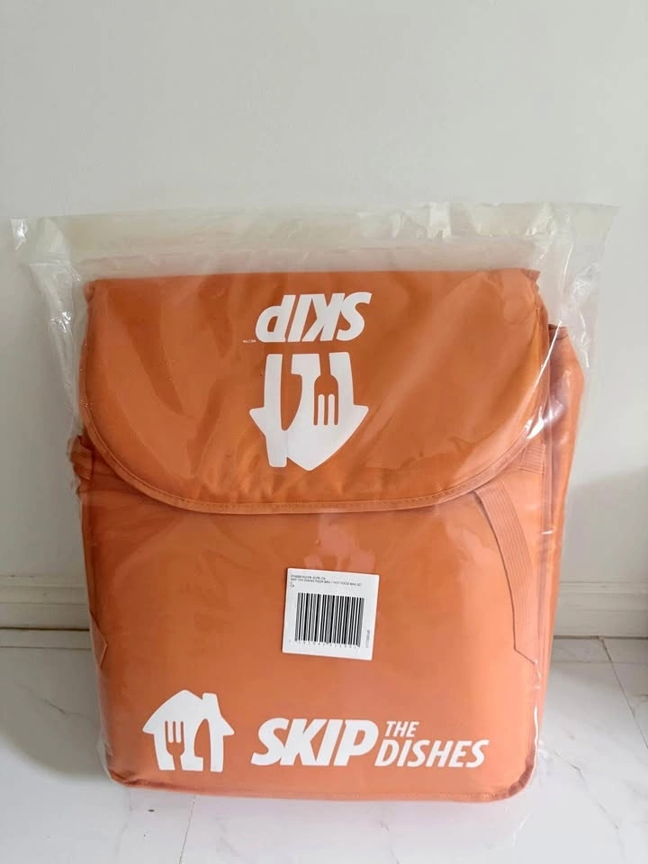 Brand new Skip The Dishes pizza and hot food delivery bag, still in its original packaging. Great for keeping food warm on the go.