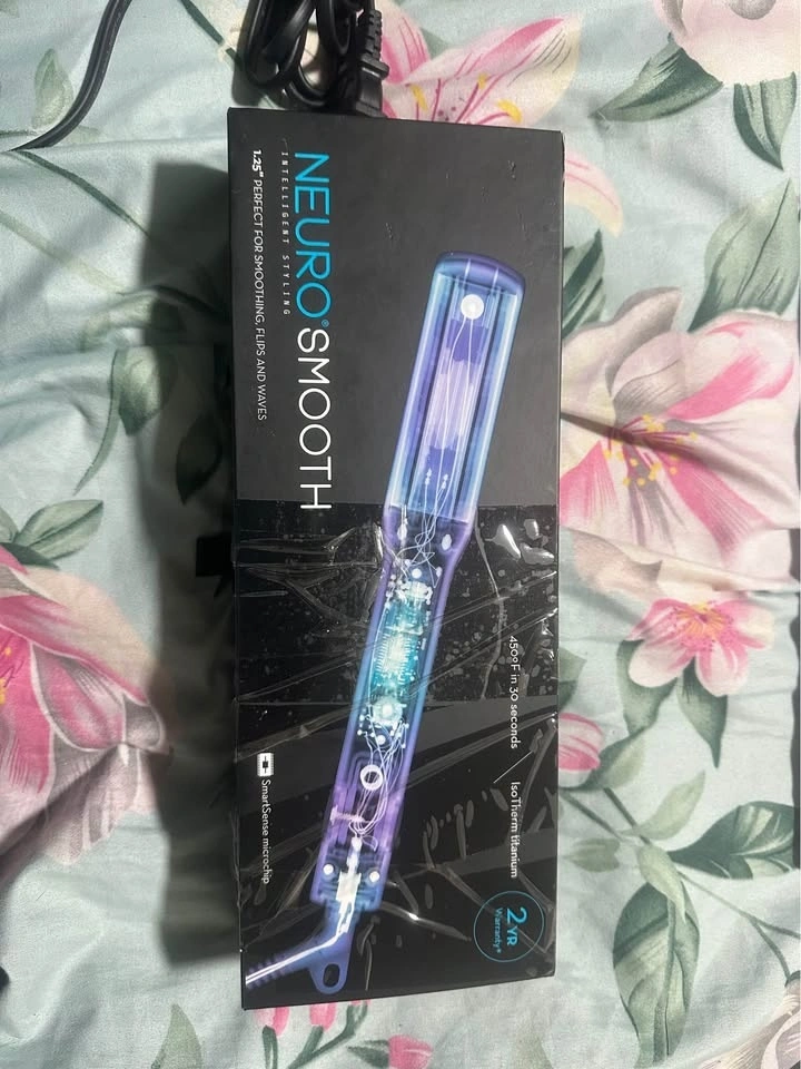 New Paul Mitchell Neuro Smooth flat iron. This is the 1.25 inch model NS12NAS. Has IsoTherm titanium plates and SmartSense microchip. Heats up to 450°F in just 30 seconds. Comes with original box and a small Neuro Style Protect spray.