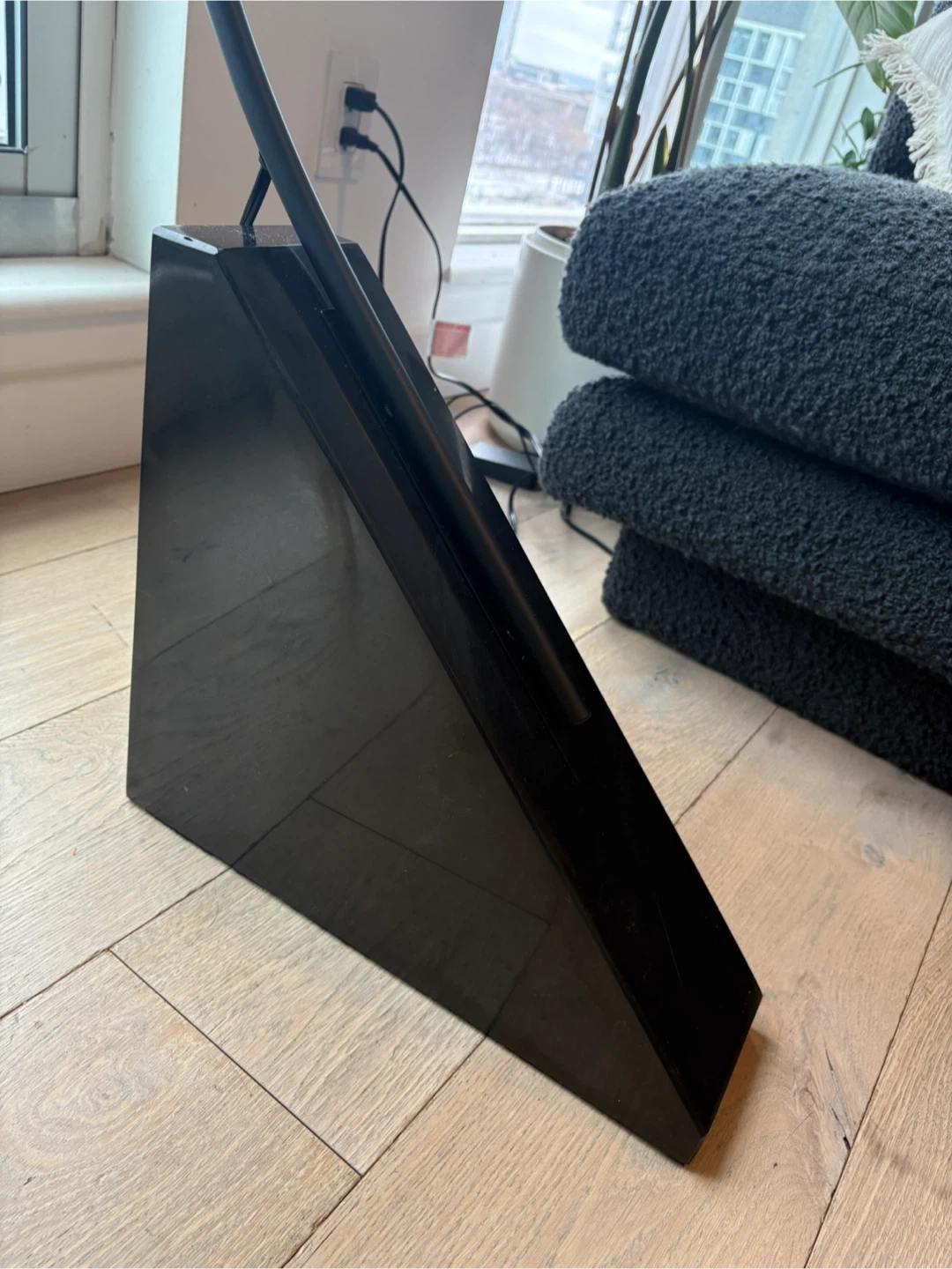 Large black arc floor lamp with a dome shade and black marble base. Bought it before Christmas but got to install it just now only to realize that we couldn’t position it to shine where we wanted. It’s so beautiful but won’t work for our space 😭😭 original price $499+tax, selling for half that, even tho it’s brand new in box and was only installed for a day.