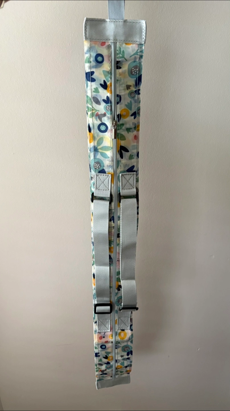 The bag zips closed and has straps for easy carrying.
