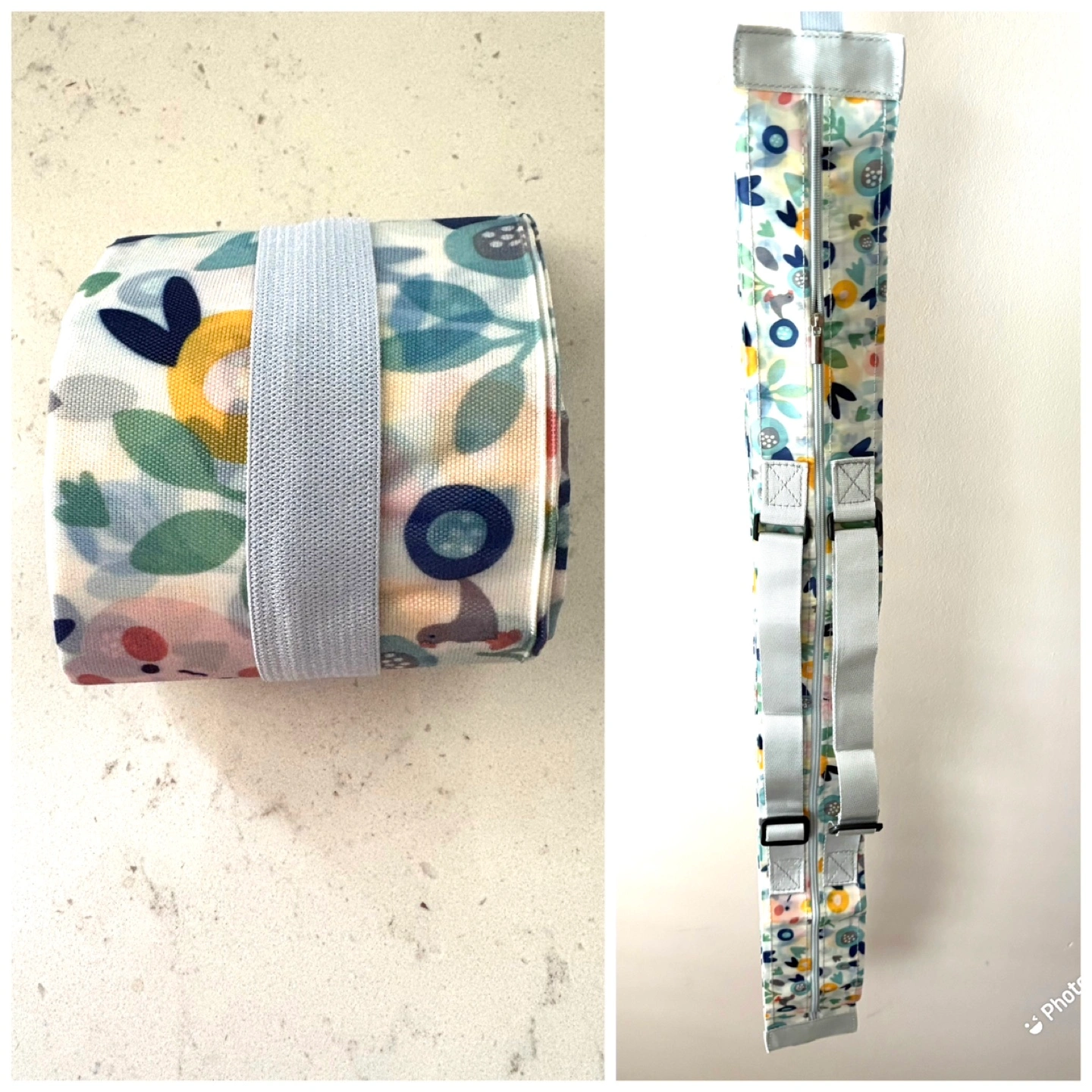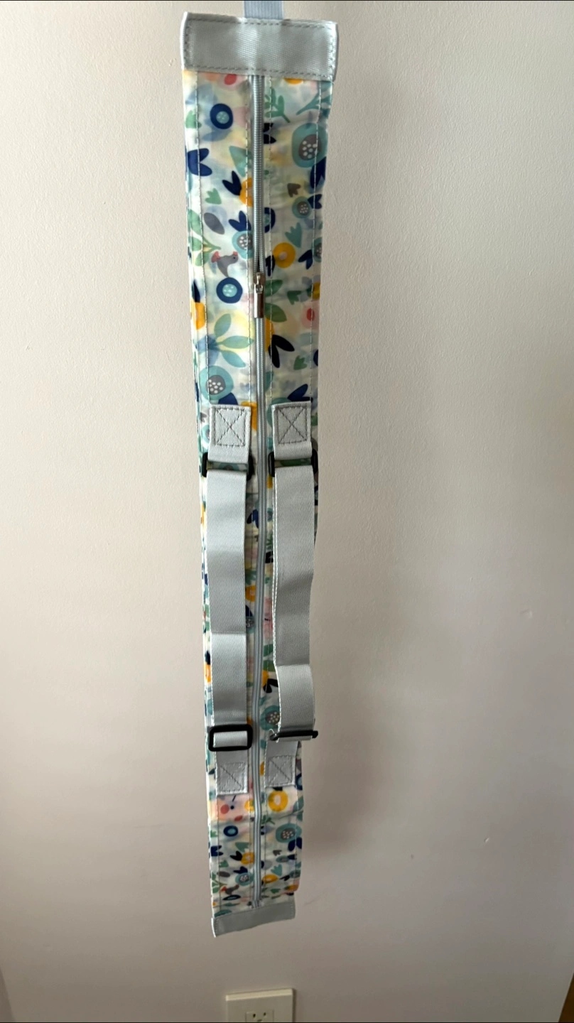 The bag zips closed and has straps for easy carrying.