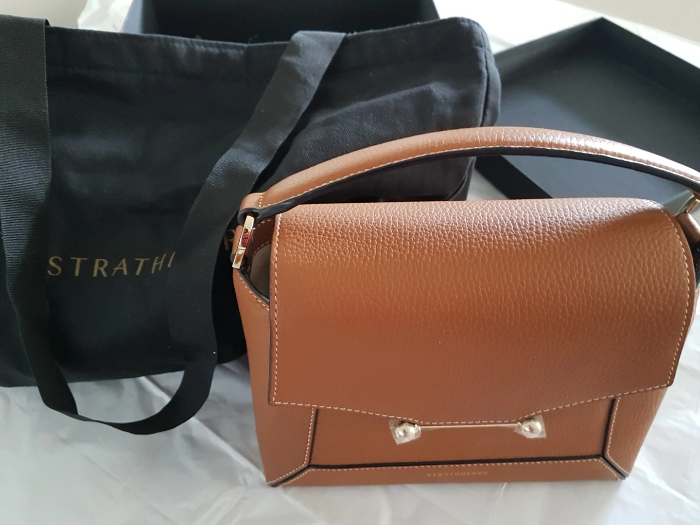 Gorgeous Strathberry Lana bag in tan with vanilla stitching. It's made from pebbled leather and comes with a detachable shoulder strap and dust bag. This stylish bag is perfect for everyday use! Bought two of the same colour. Made in Spain