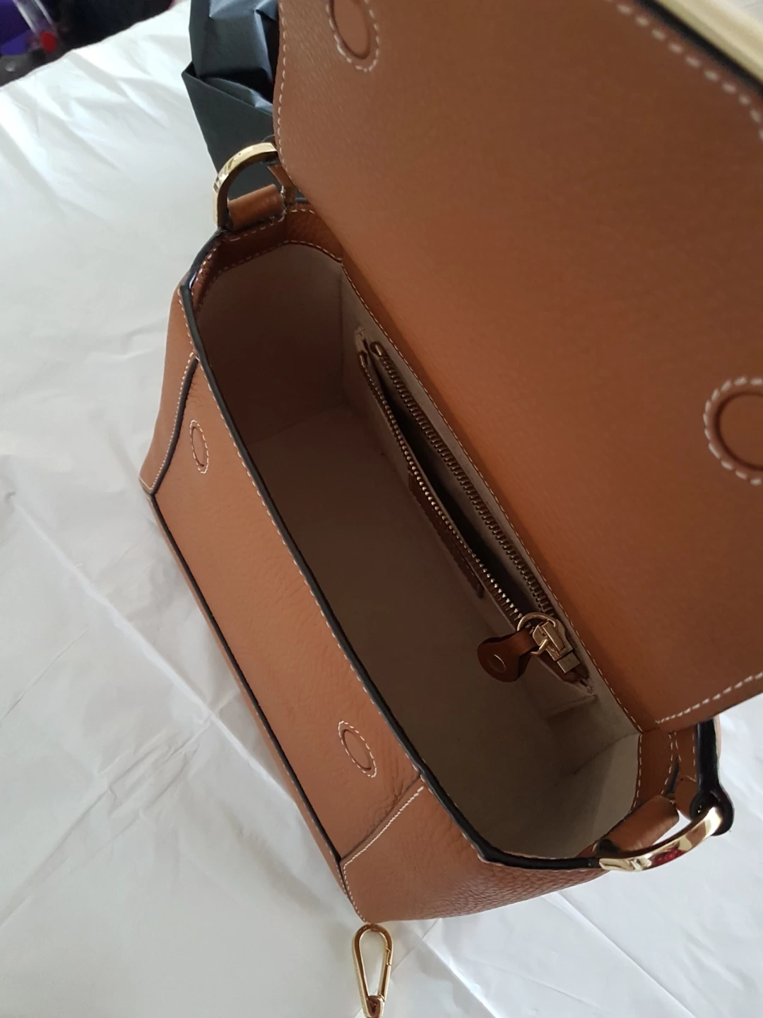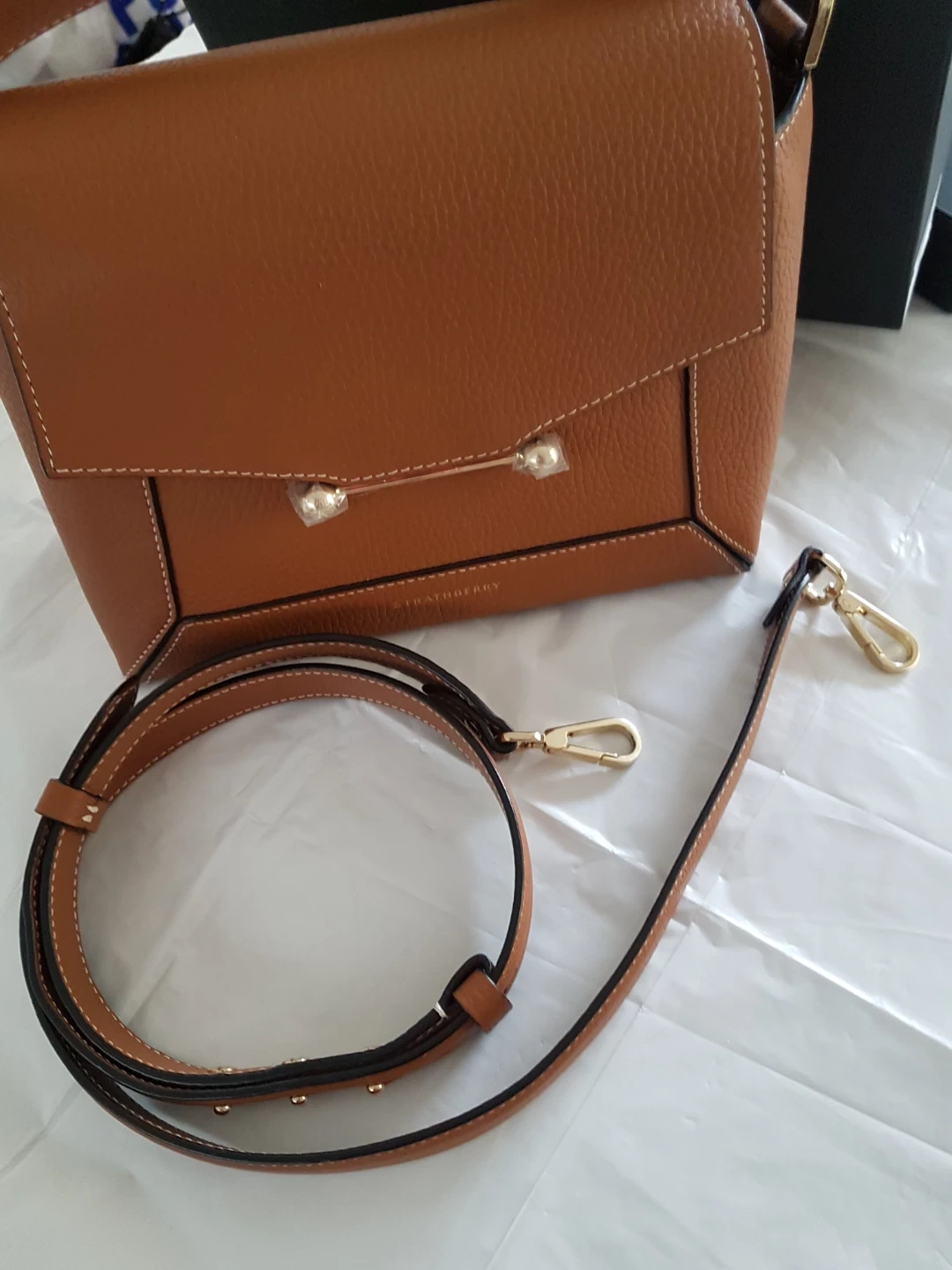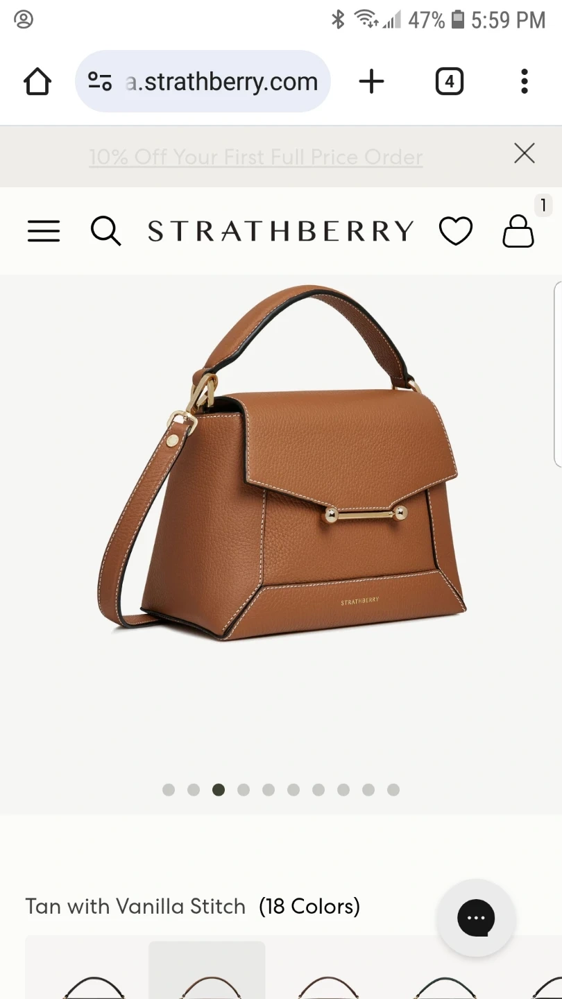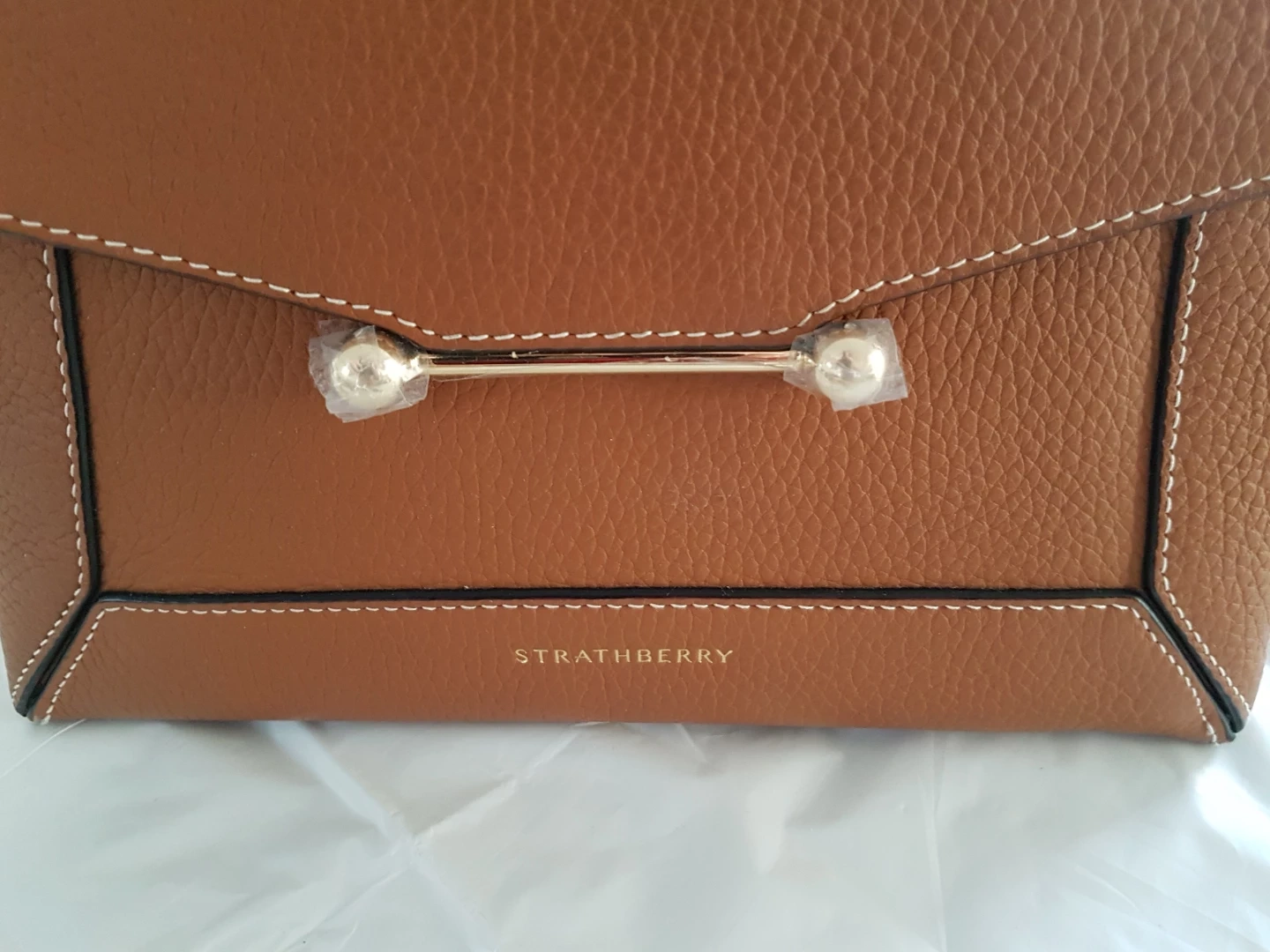 Gorgeous Strathberry Lana bag in tan with vanilla stitching. It's made from pebbled leather and comes with a detachable shoulder strap and dust bag. This stylish bag is perfect for everyday use! Bought two of the same colour. Made in Spain