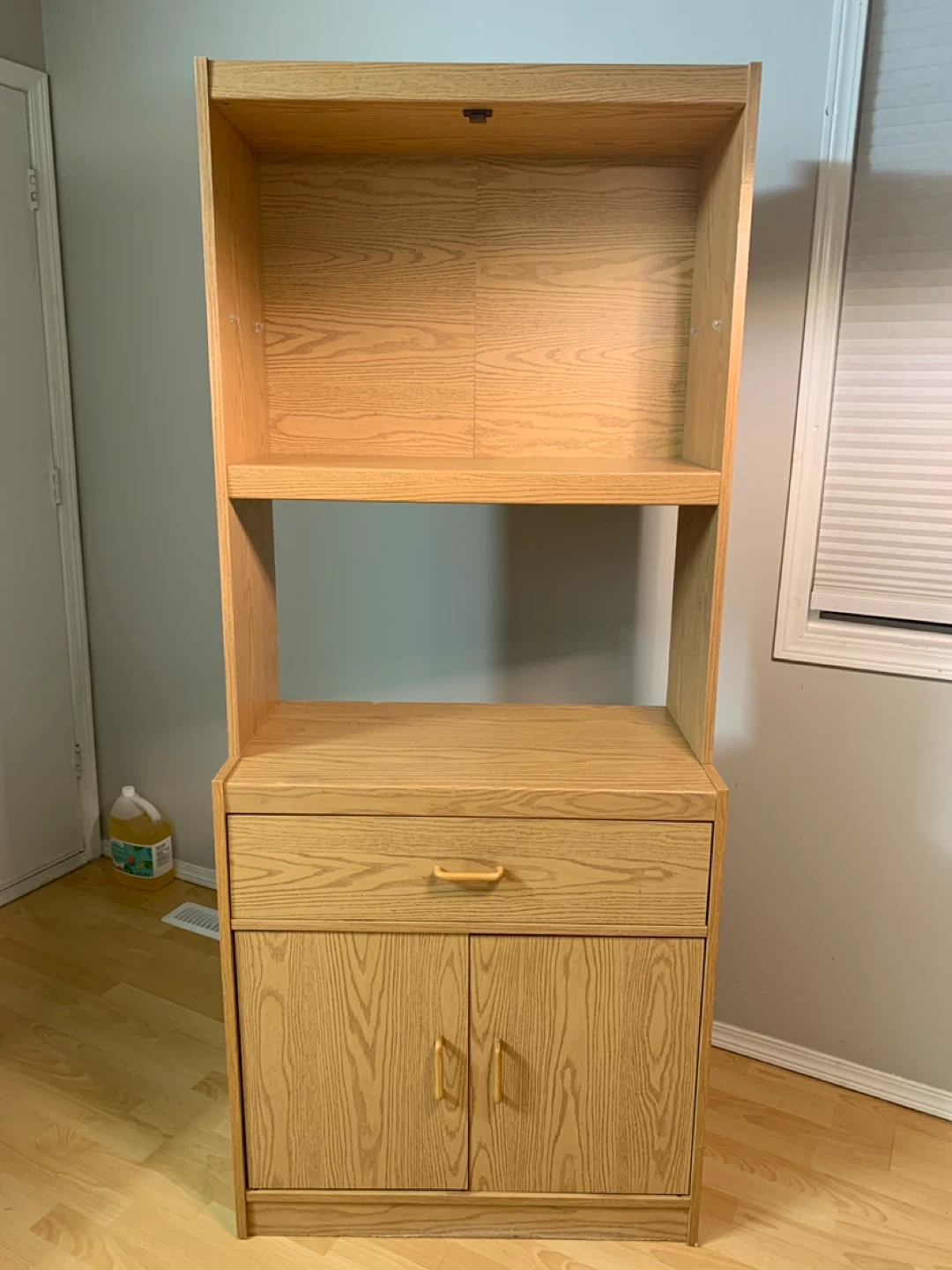 Oak laminate hutch with drawer and cabinets