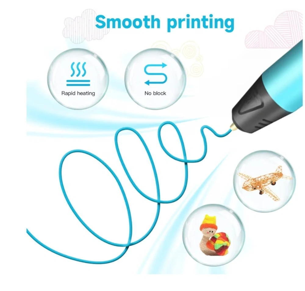 Smooth printing & low noise model.The 3D printing pen head is made of brass, ensuring quick heating, durability, and reduced likelihood of blockage.