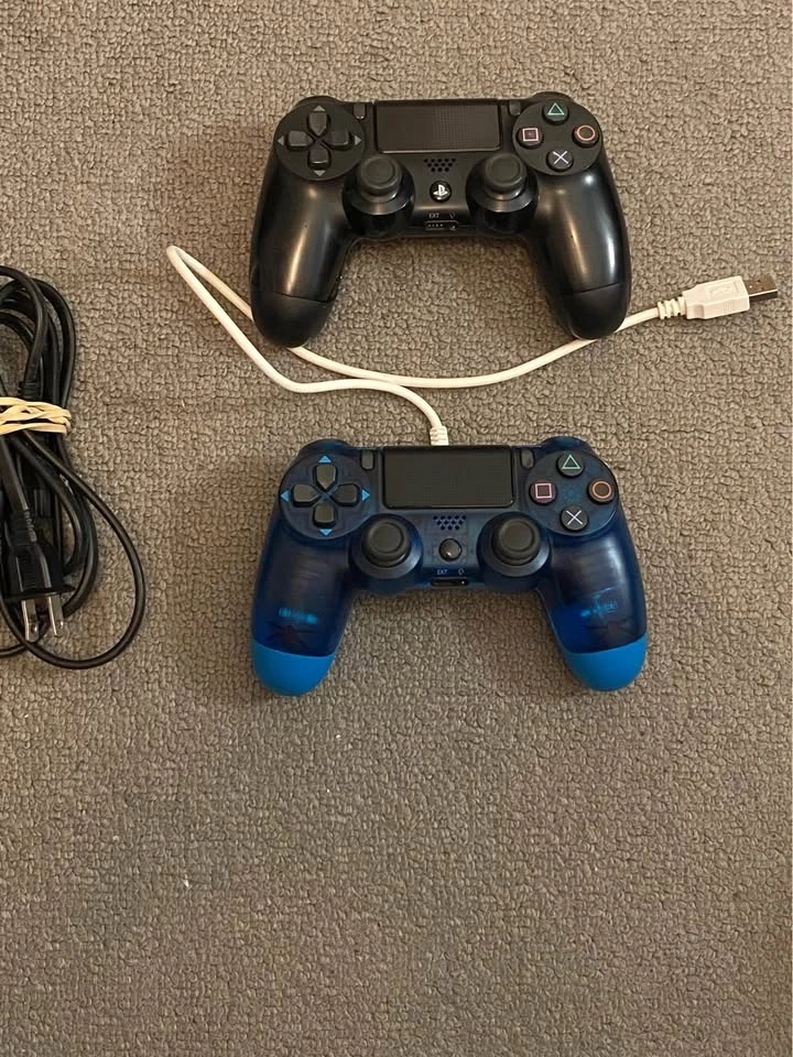 Selling my PS4 in good working condition. Everything has been tested and runs smoothly with no issues. Includes: PlayStation 4, 2 controllers (black & blue) - tested and working, Power cable, Controller charging cable, GTA The Trilogy (single disc with GTA III, Vice City & San Andreas) - no case. Normal cosmetic wear from use; no functional issues.