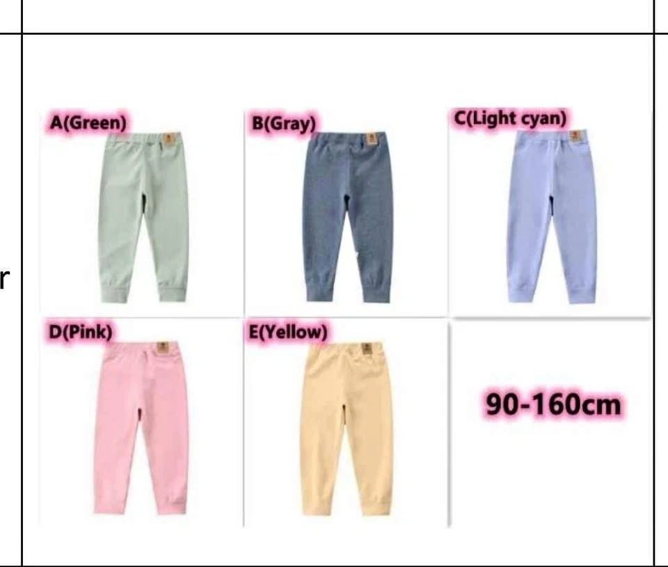 These beautiful soft comfy trousers are available in 5 different colors. All the colors and size from 90 to 160 are available. These sizes are good for 18 months old to 12 years old. Really good for fall and winter as well.