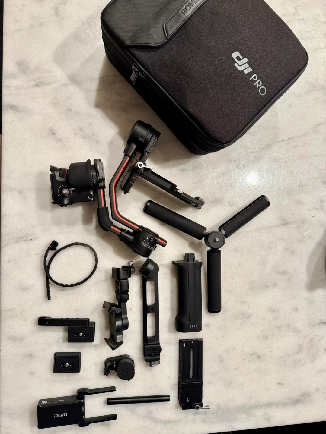 DJI RS2 gimbal stabilizer with all original accessories and carrying case included. It's designed for professional camera stabilization.