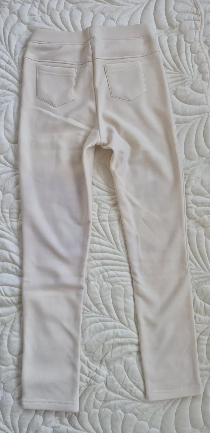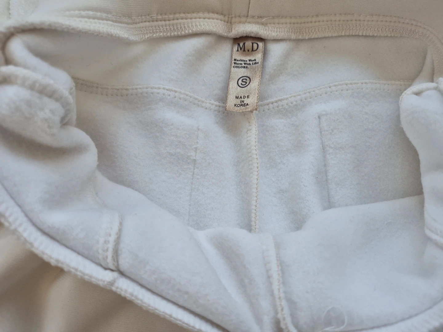 M.D. leggings in a cream colour. Size small. Made in Korea. These leggings are made with a soft, fleece-lined material, perfect for cooler weather.