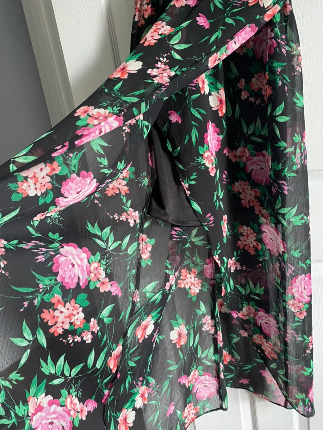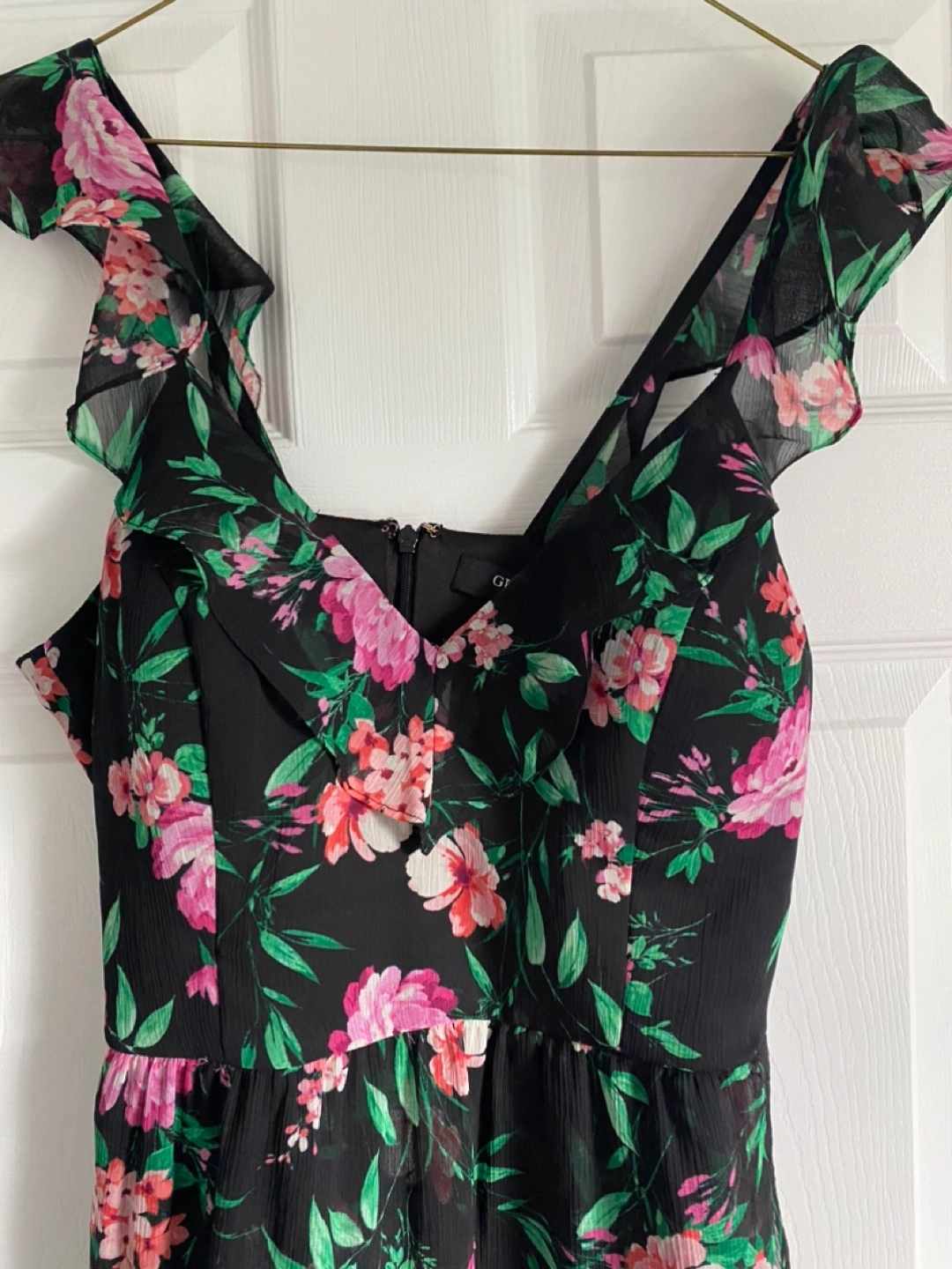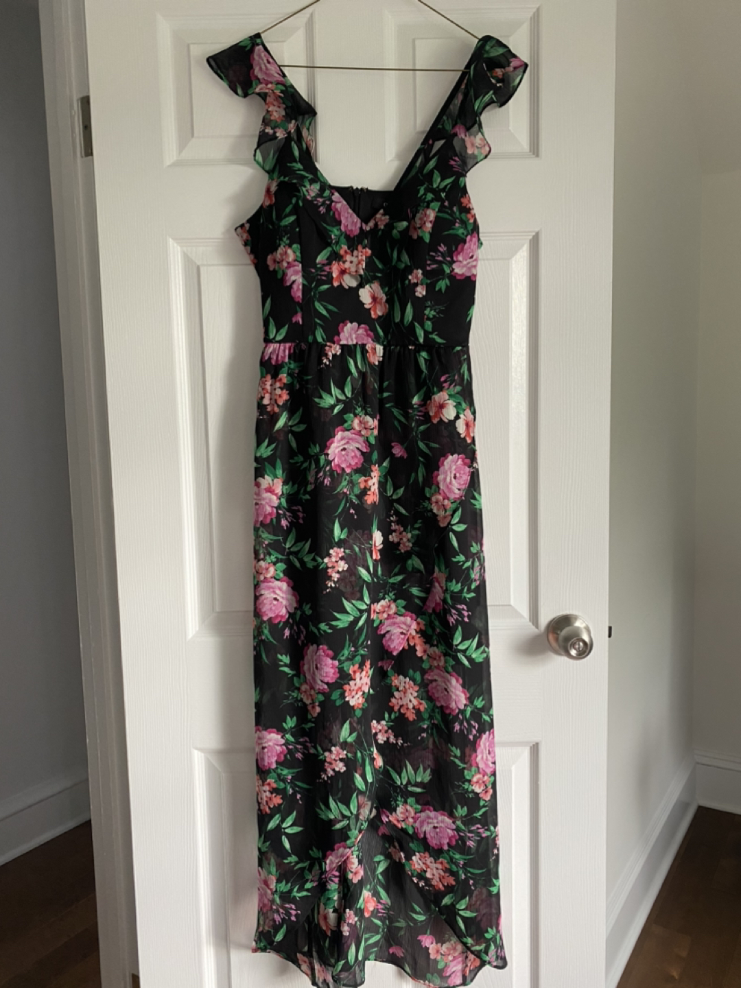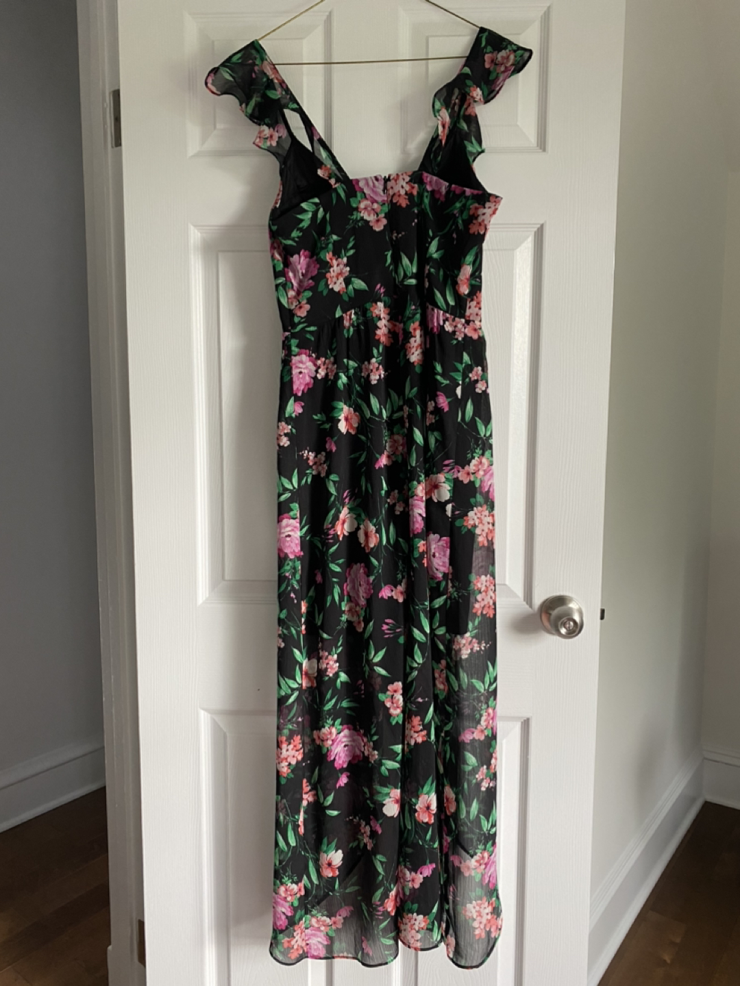 Bought and wore once to wedding. Really pretty, fits true to size, material is light. Great as a cocktail / wedding / evening event dress.