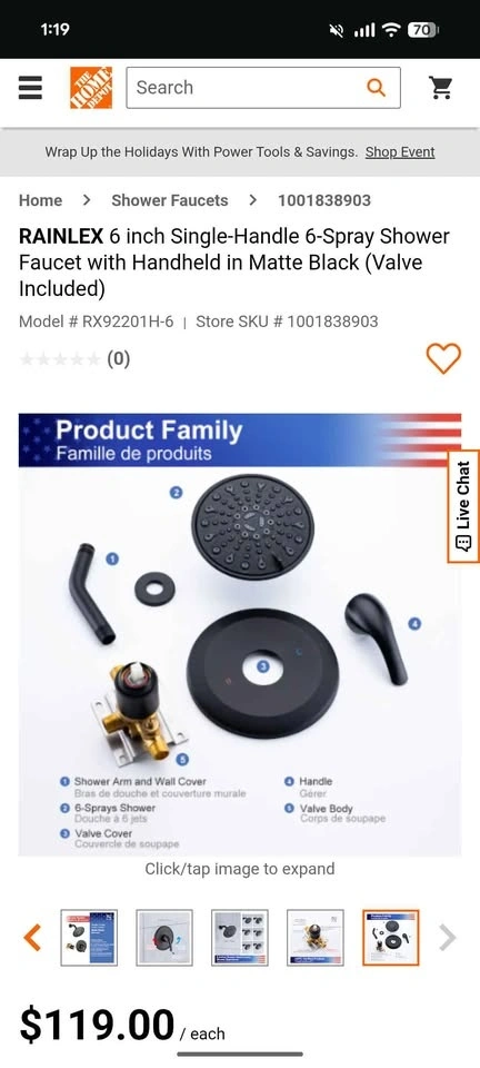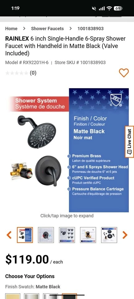Brand new Rainlex® Shower Faucet Kit in Matte Black with Rough-In Valve. Still in the original box. Home Depot price is $120 CAD, asking only $45 CAD. Free delivery within Niagara Falls.