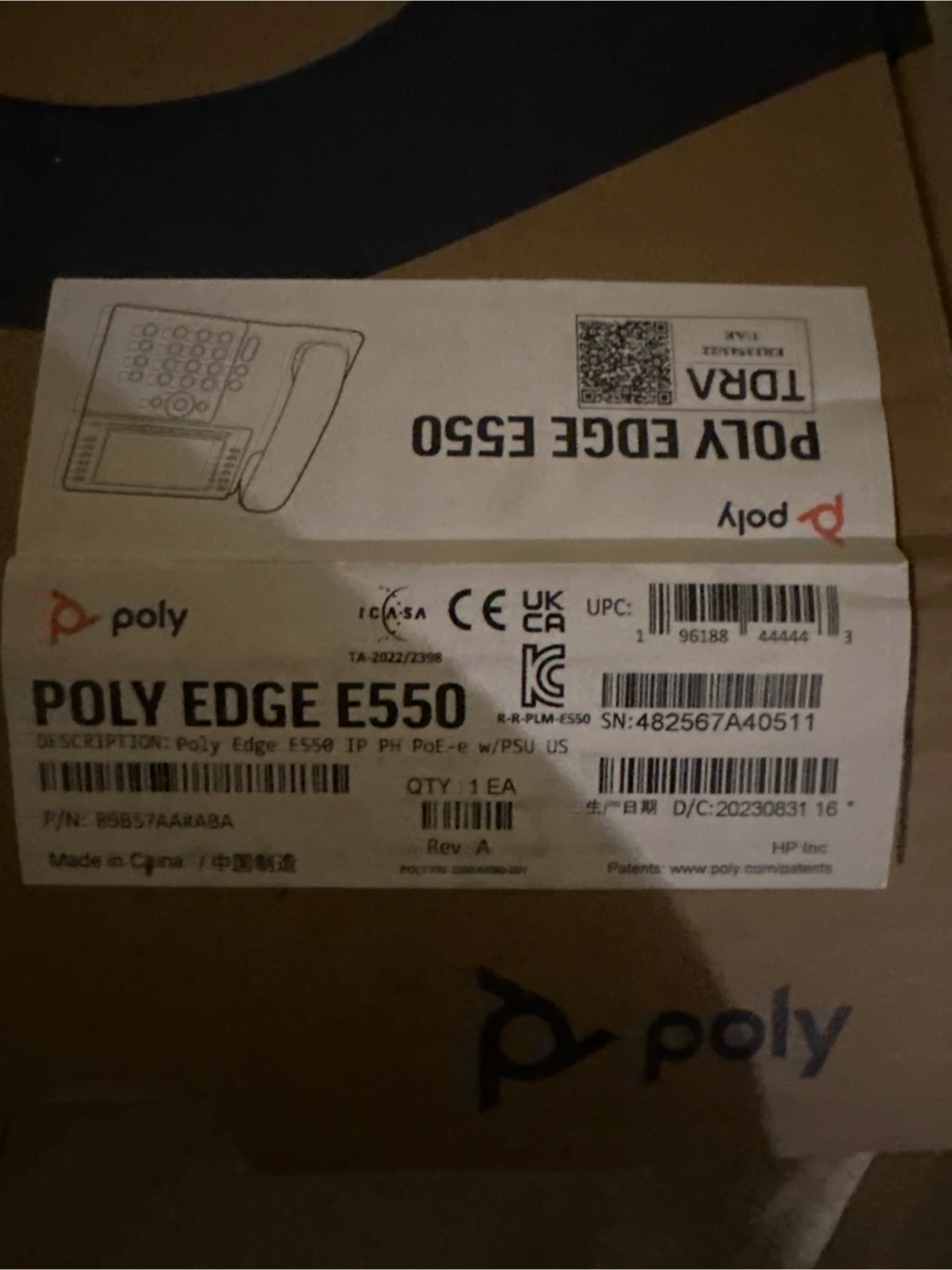 Poly Edge E550 IP Phone. Includes power supply unit and cables. This is a single E550 IP phone. Have E911 Stickers used my RingCentral service
