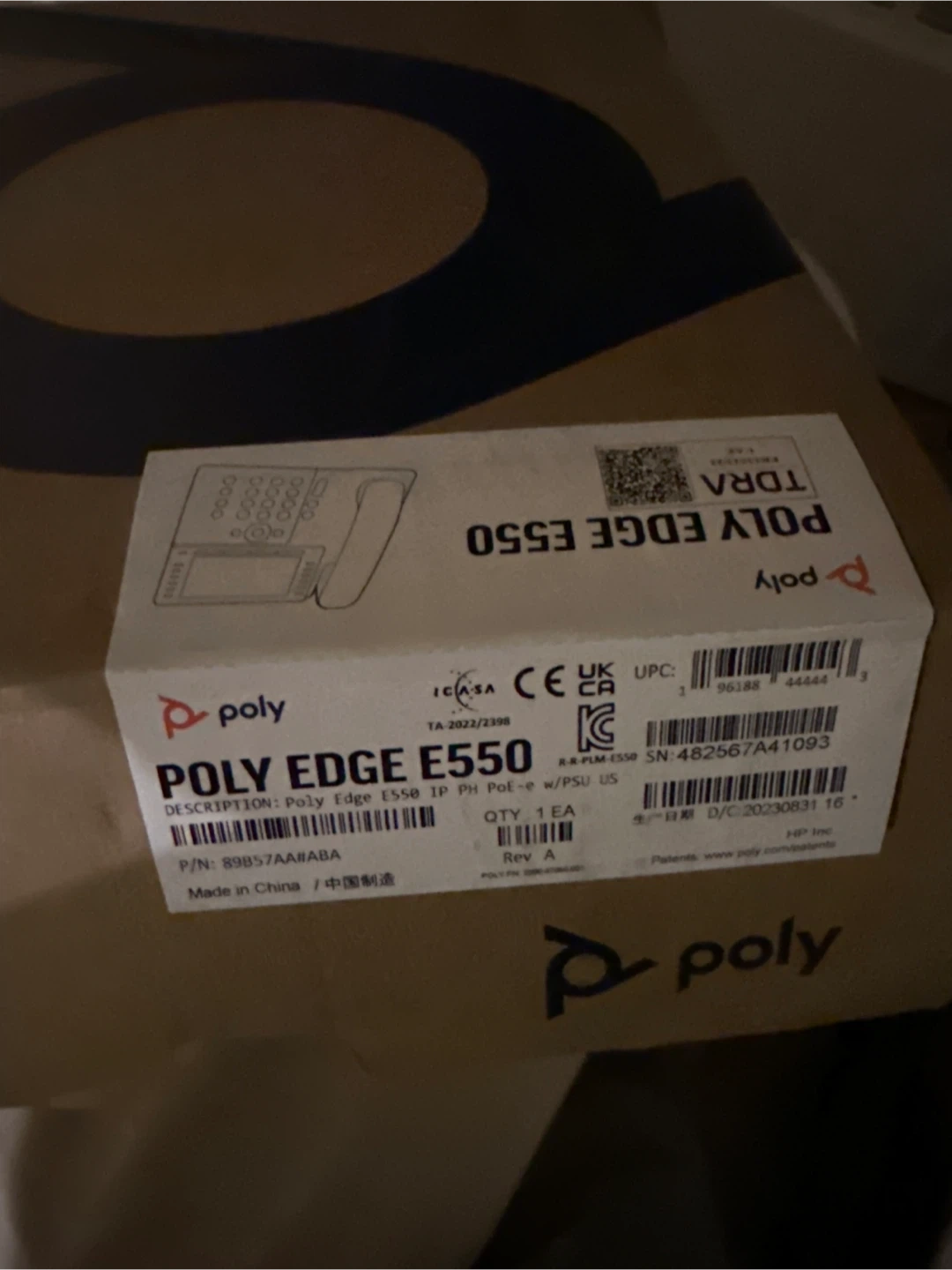 Poly Edge E550 IP Phone. Includes power supply unit and cables. This is a single E550 IP phone. Have E911 Stickers used my RingCentral service