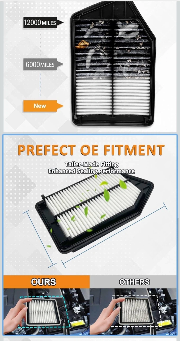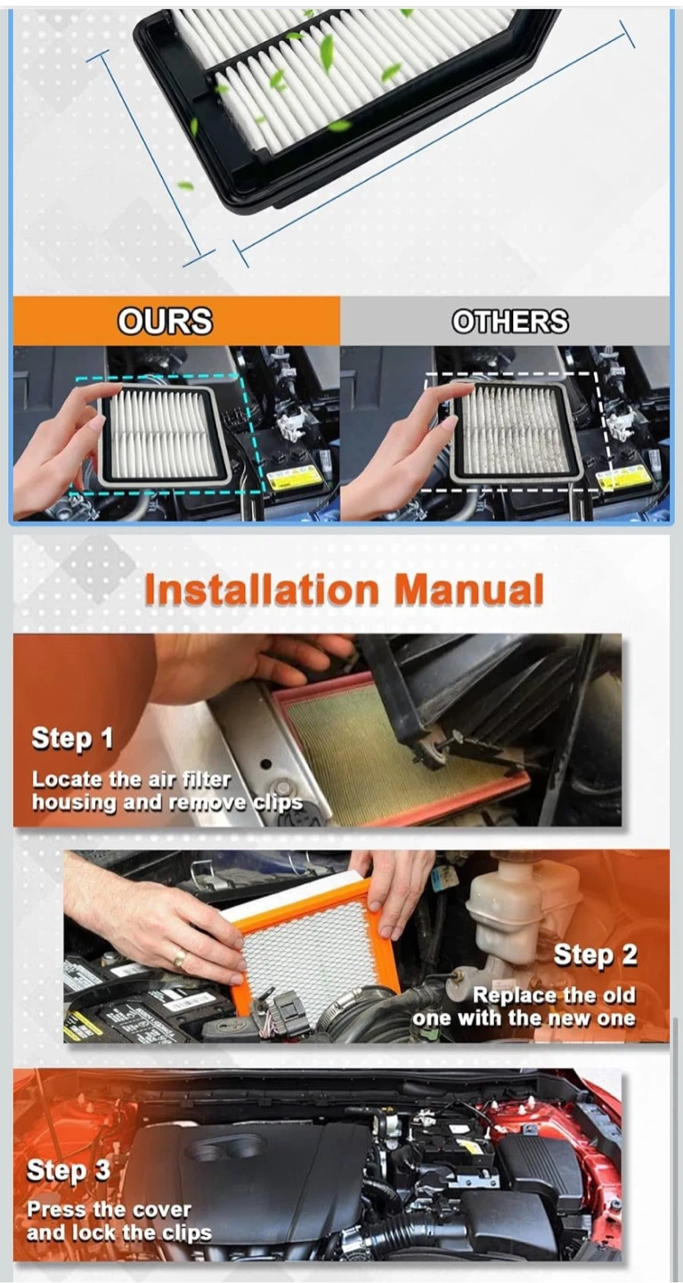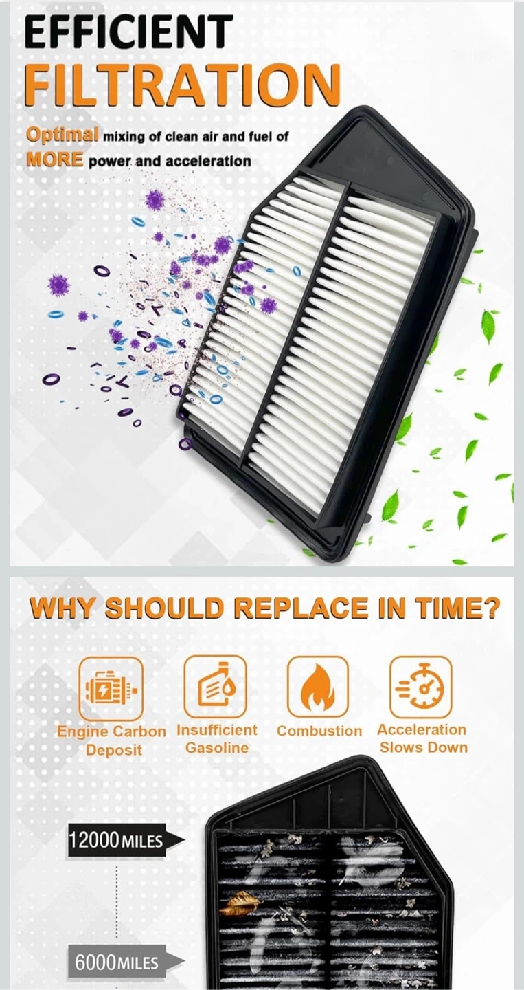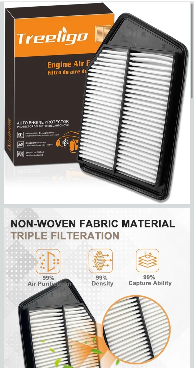 This is a Treeligo engine air filter for optimal engine performance. It's made with non-woven fabric material for triple filtration and 99% air purification. Provides thermostability and leak prevention for your vehicle.