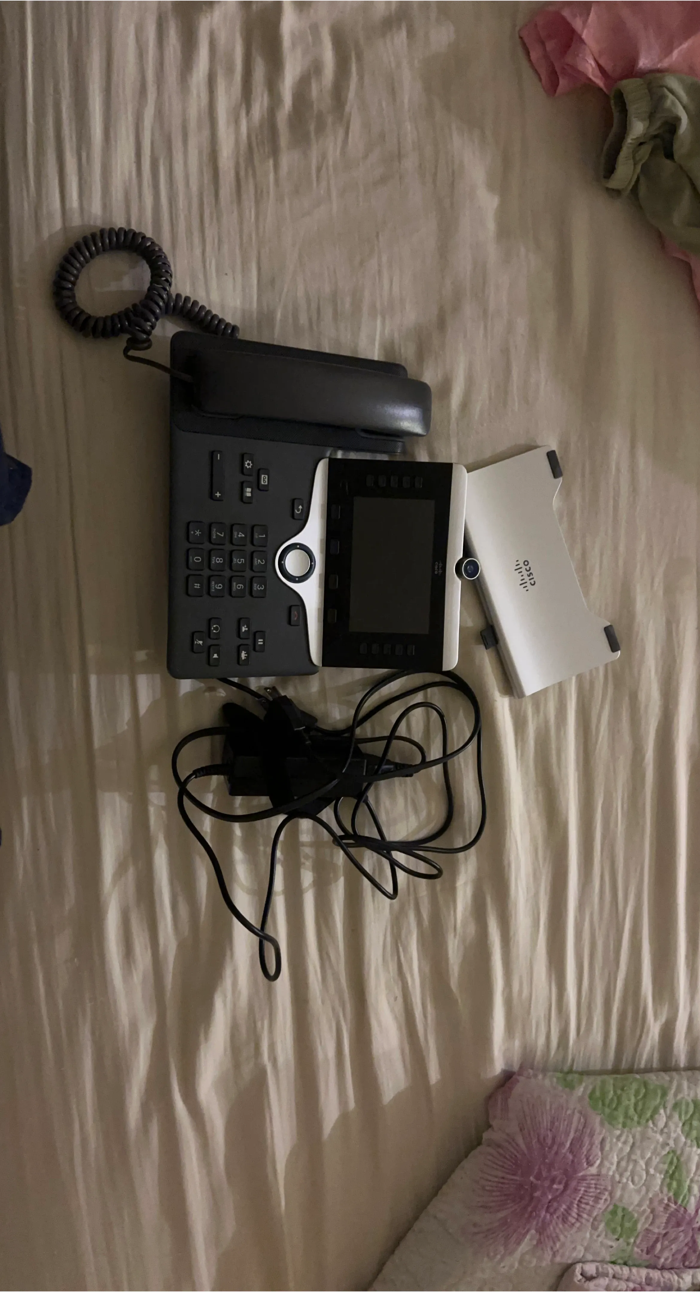 Cisco IP video phone. Includes handset, power adapter, and docking stand. Ready for your office setup! Also have been migrated from CUCM to 3PCC have factory reset it. Also like to trade for a Cisco phone or mitel phone.