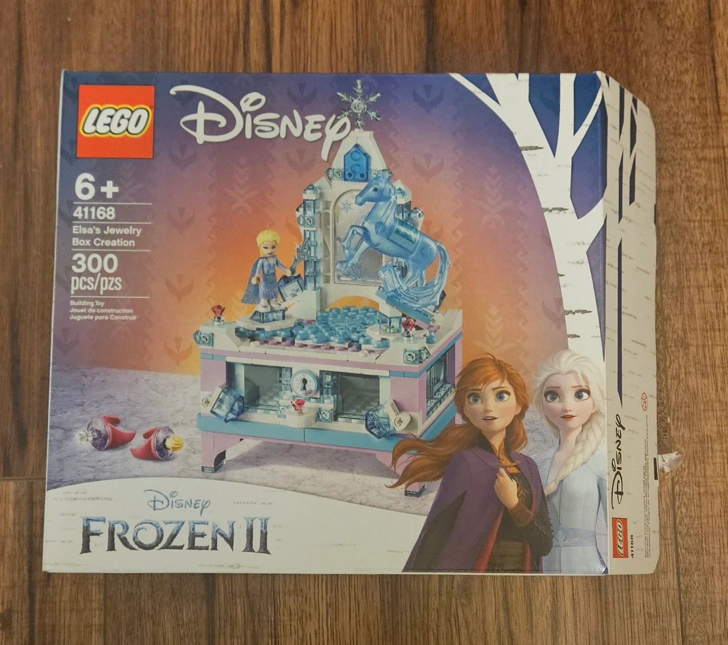 This LEGO Disney Frozen II set lets you build Elsa's Jewelry Box. It comes with 300 pieces to create a cool building toy! It's perfect for fans of Frozen who are 6 and older.