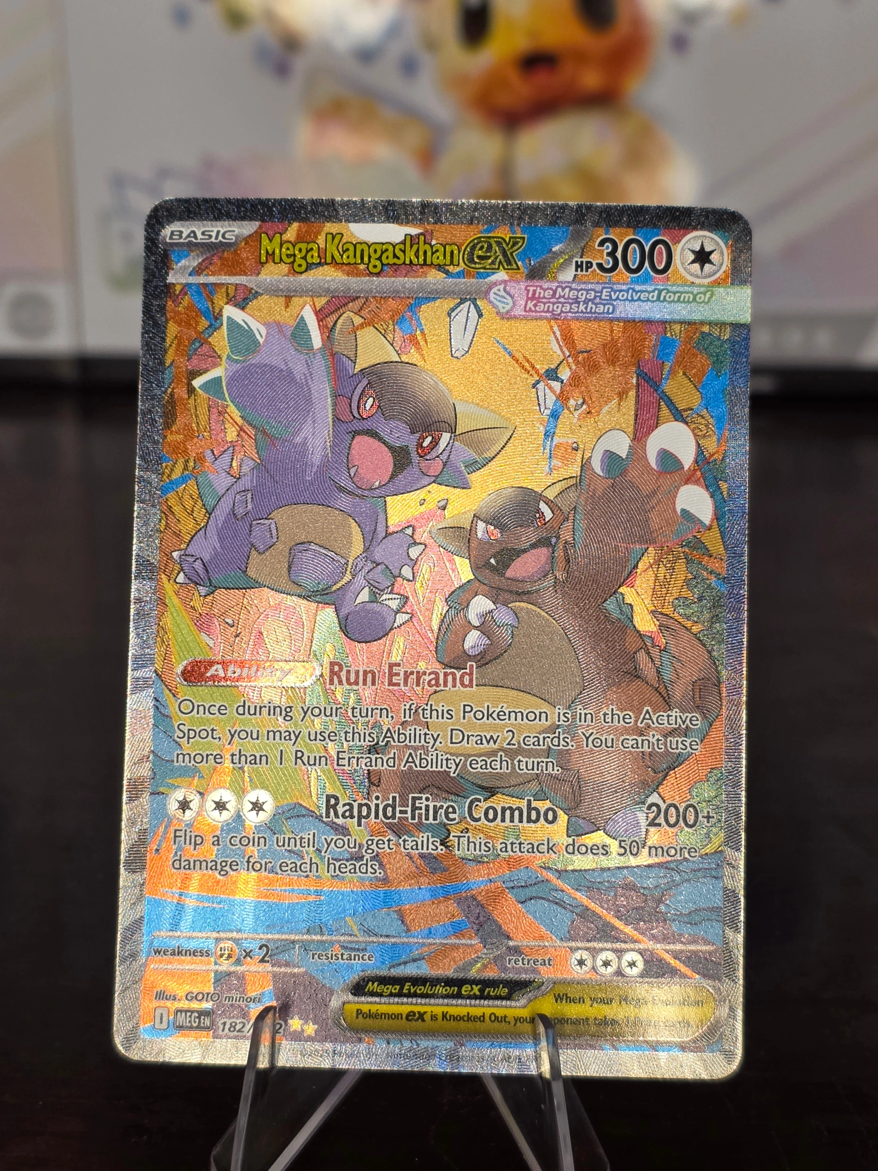 Up for sale is Mega Kangaskhan EX #182, a Secret Rare Full Art card from the Pokémon XY BREAKthrough set. This card is highly sought after for its iconic artwork, competitive history, and low pull rate as a secret rare. Featuring the powerful Mega Evolution of Kangaskhan, it’s a standout piece from the XY era and a must-have for serious collectors and longtime Pokémon fans.