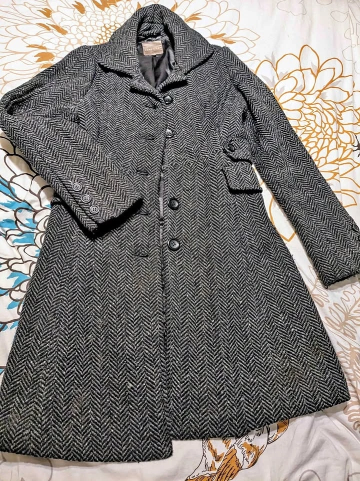 Pretty longline wool coat, warm enough for winter and dressy enough to wear to formal events. Silky lining layers well. Gently worn and in need of one button in Front Middle. Porch pickup and Cash preferred.
