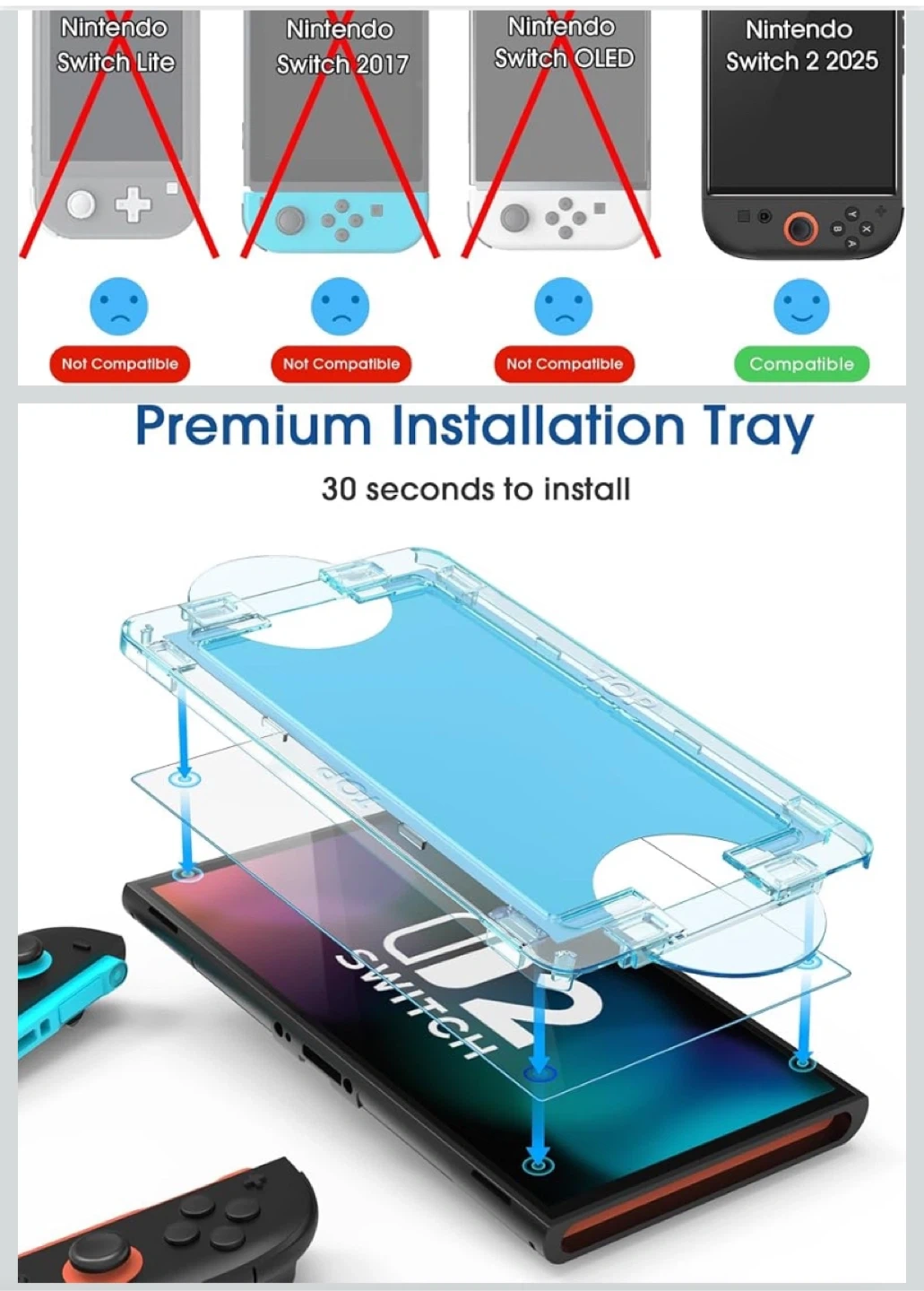 These are amFilm tempered glass screen protectors. Designed for Nintendo Switch 2 2025 models. Includes accessory kits for installation. Includes a lifetime warranty.