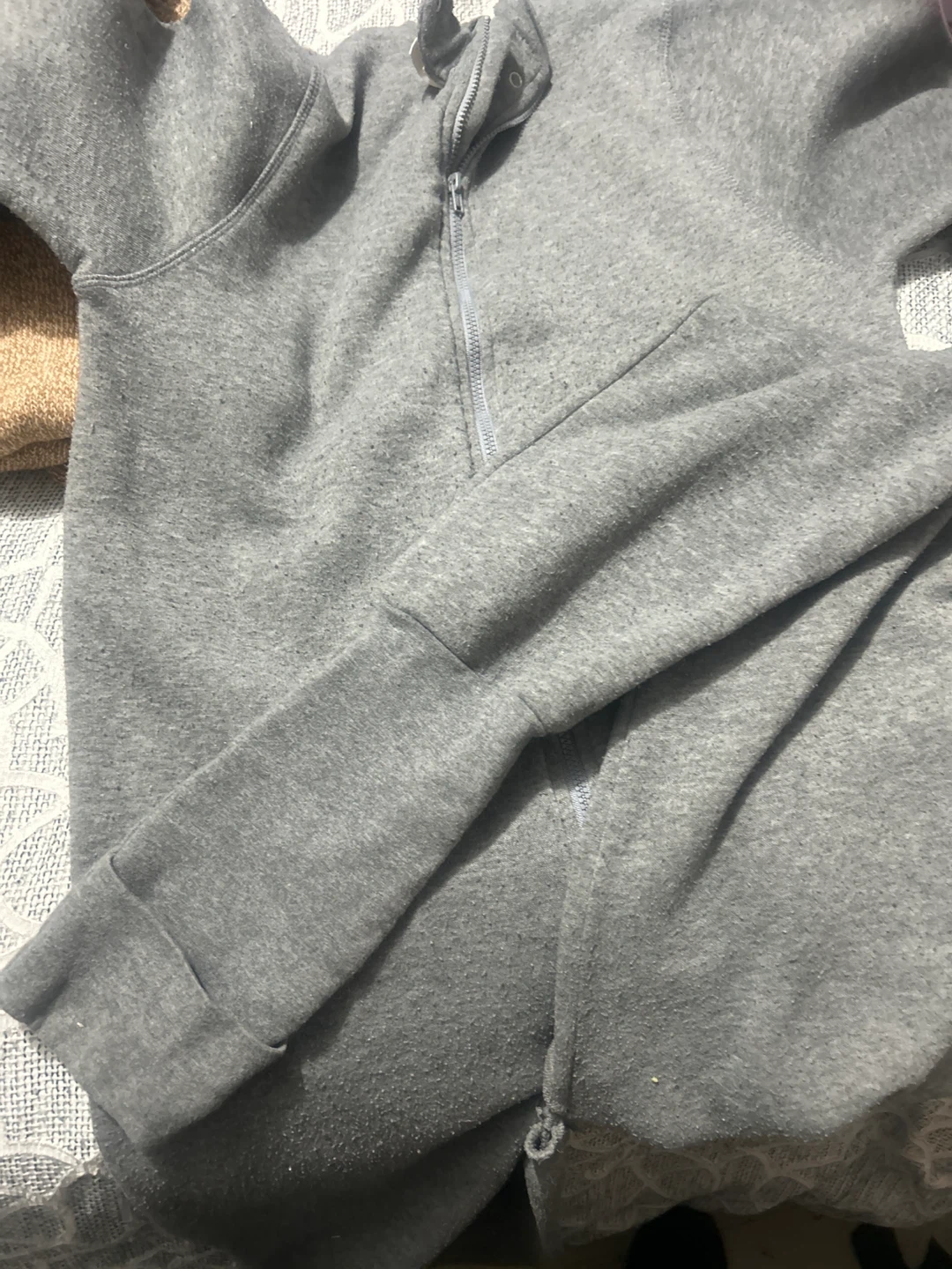 Some pilling is visible on the grey onesie, small hole that can be sewn. Size can fit 8-12yrs old