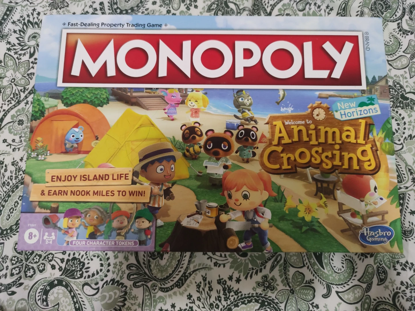 It's the Monopoly board game with an Animal Crossing: New Horizons limited edition theme! Enjoy island life and earn Nook Miles to win. Includes four character tokens and a game guide.