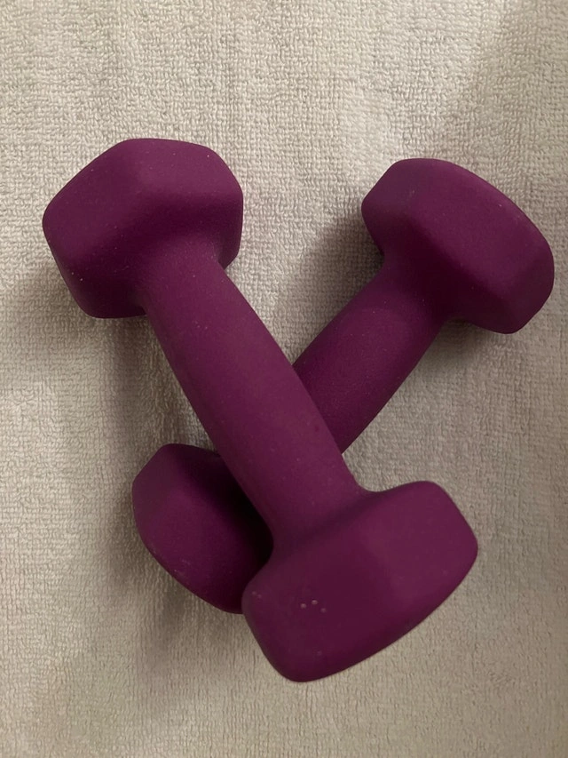 Get ready to pump some iron with these 3LB dumbbells! They are perfect for adding a little extra resistance to your workouts and come in a stylish purple colour. These dumbbells have been used but are still in great condition, ready to help you reach your fitness goals. Feel free to message if you have any questions!