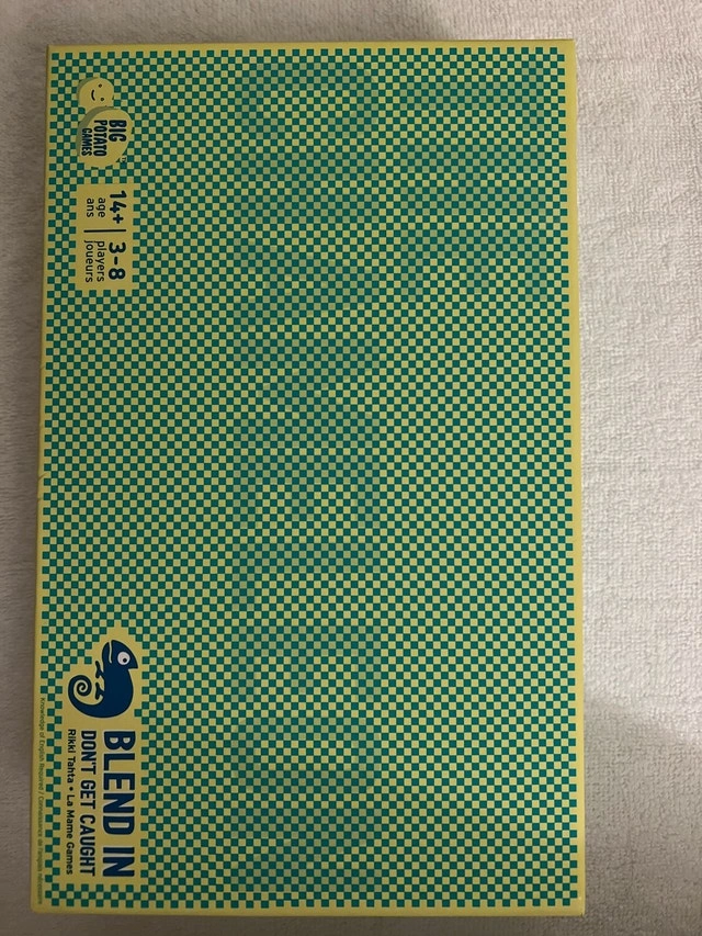 Blend In is a social deduction game from Big Potato Games for 3-8 players, ages 14 and up, where players try to figure out who doesn't know the secret word. This copy is in excellent condition. Ages 14+ 3-8 Players Social Deduction If the ad's still up, the game's still available! Cash accepted.