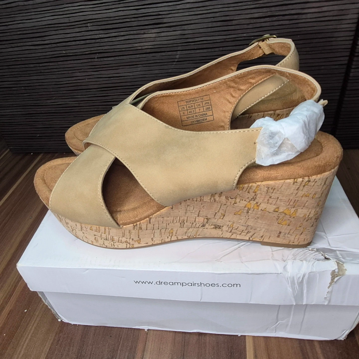 Buy & SellDream Pairs Women's Tan Wedge Sandals Size 9Dream Pairs Women's Tan Wedge Sandals Size 9$15These Dream Pairs wedge sandals feature a stylish tan crisscross strap design. The cork wedge heel provides lift and comfort. Includes original box.ConditionNewSize9WHERE TO MEETCheck LocationView MapSELLERverifiedmymymeoMontecito78870 reviews0 chats·0 favorites·7 viewsSEND CHAT TO SELLERHi mymymeo! I’m interested in your listing.Hi mymymeo! I’m interested in your listing.Get the Karrot app to chatSign In to chat