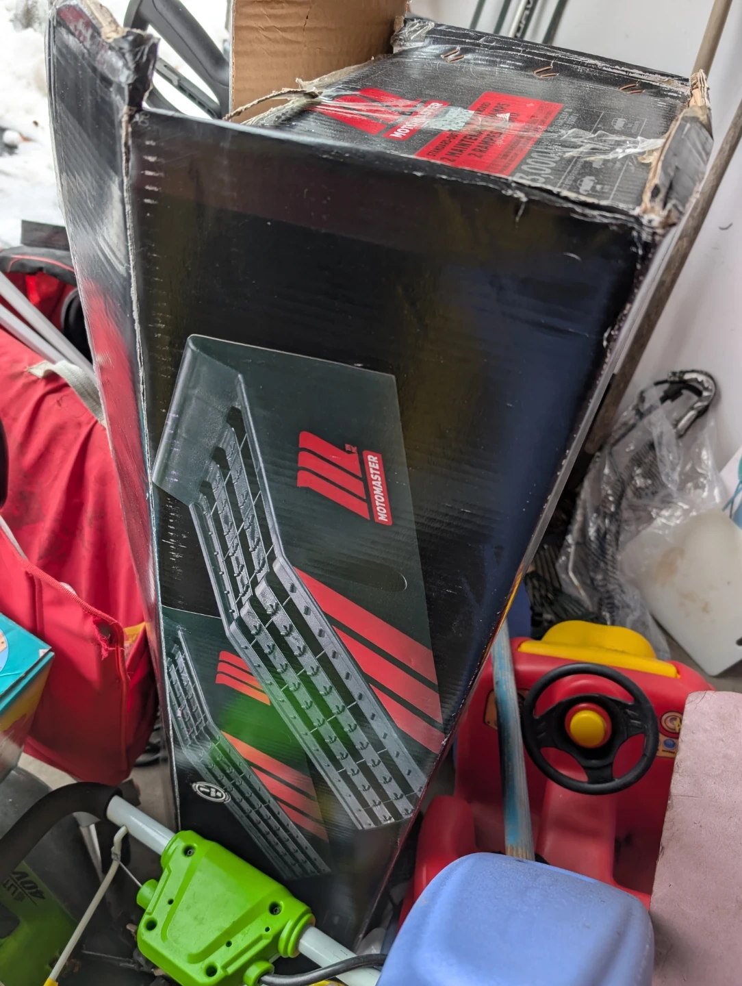 Motomaster standard-duty 2 maintenance ramps. Corrosion-resistant and high-impact plastic. Each ramp supports 13,000 pounds. Best suited for cars and trucks.