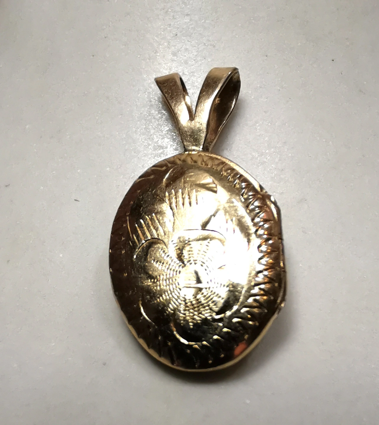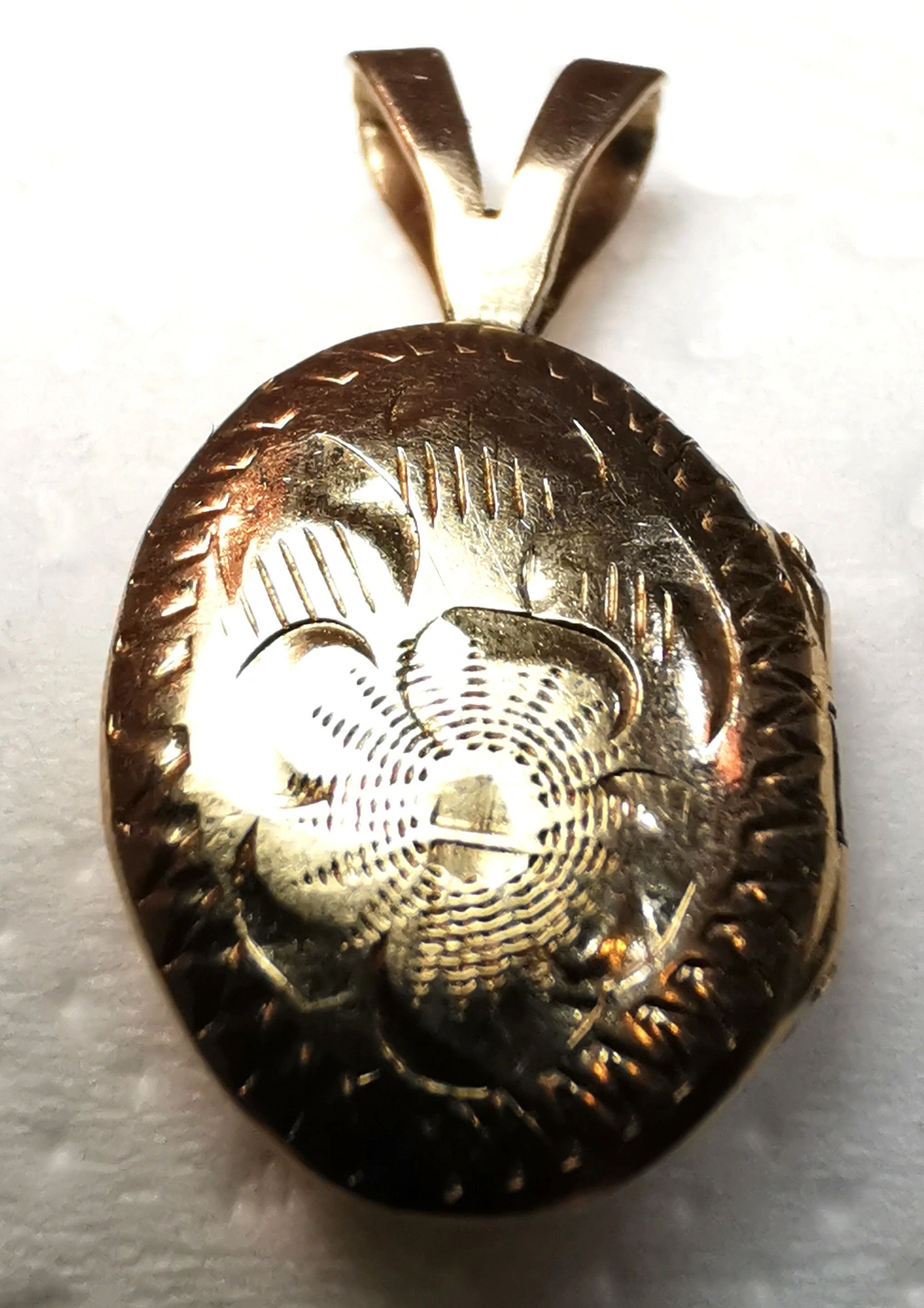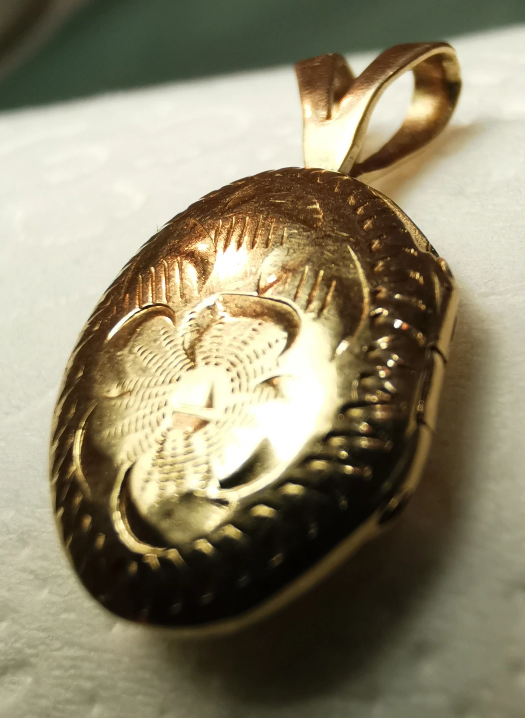 1985 14K Gold Oval Locket Pendant Diamond-Cut Floral TC Hallmark
