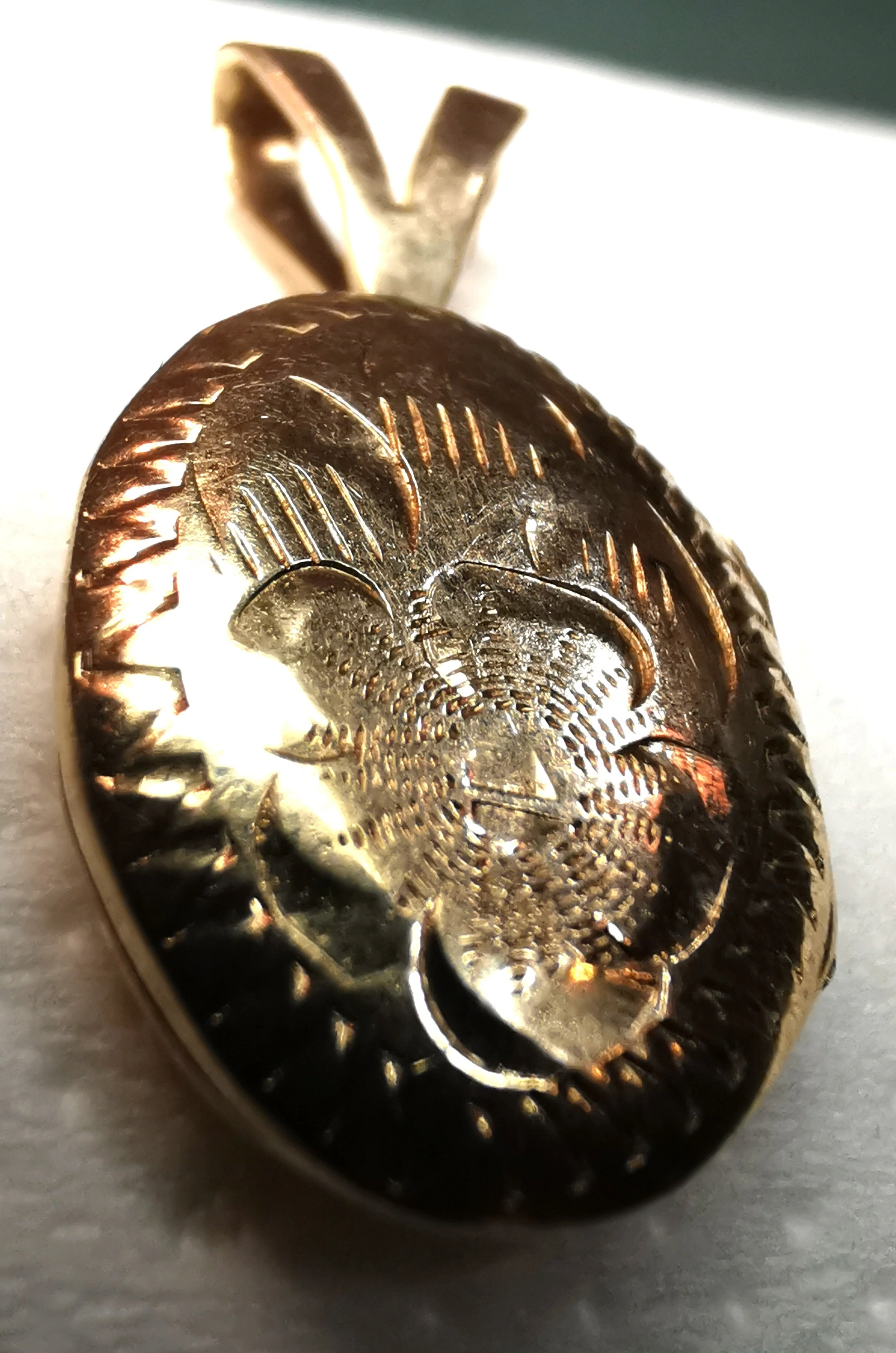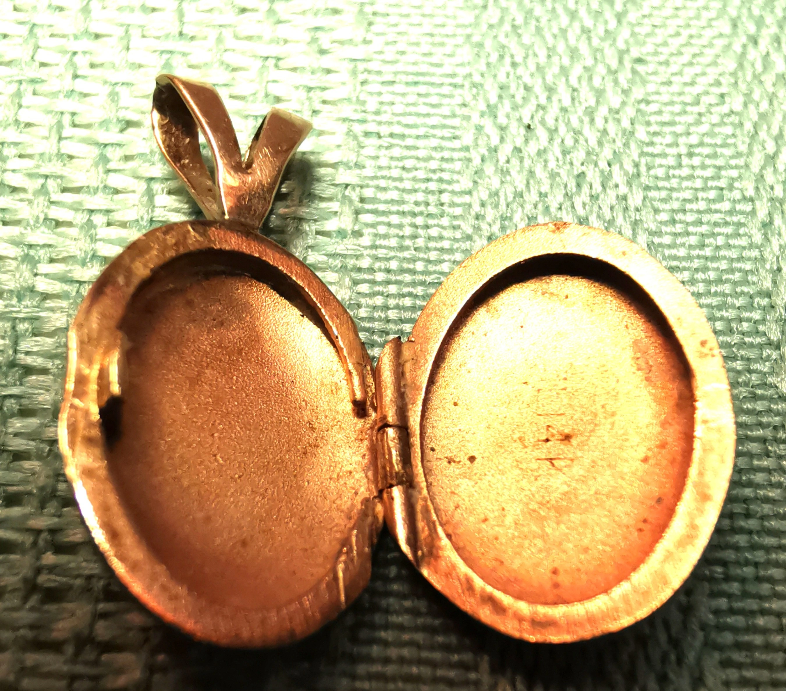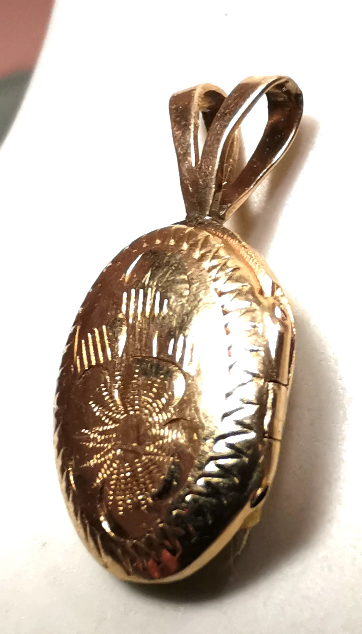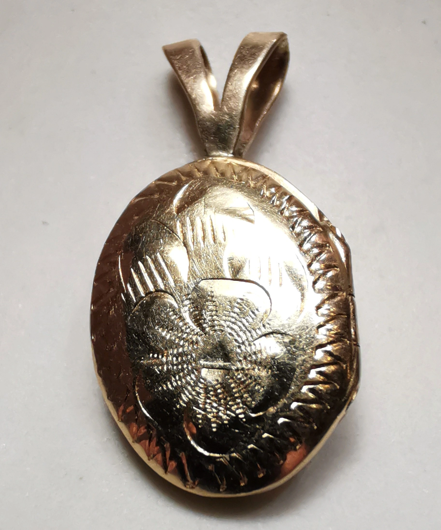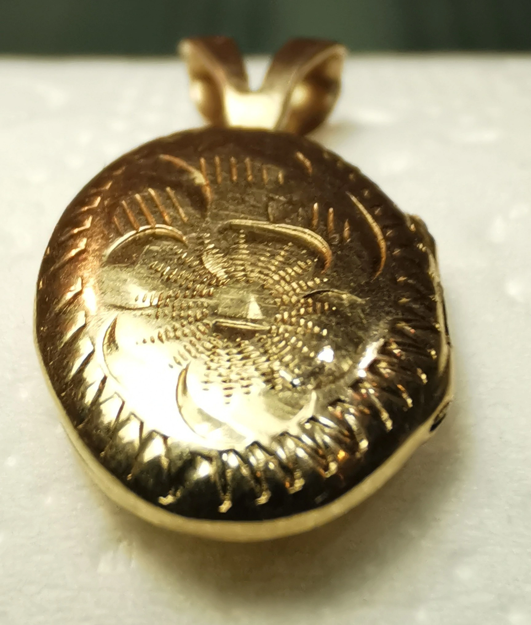 1985 14K Gold Oval Locket Pendant Diamond-Cut Floral TC Hallmark