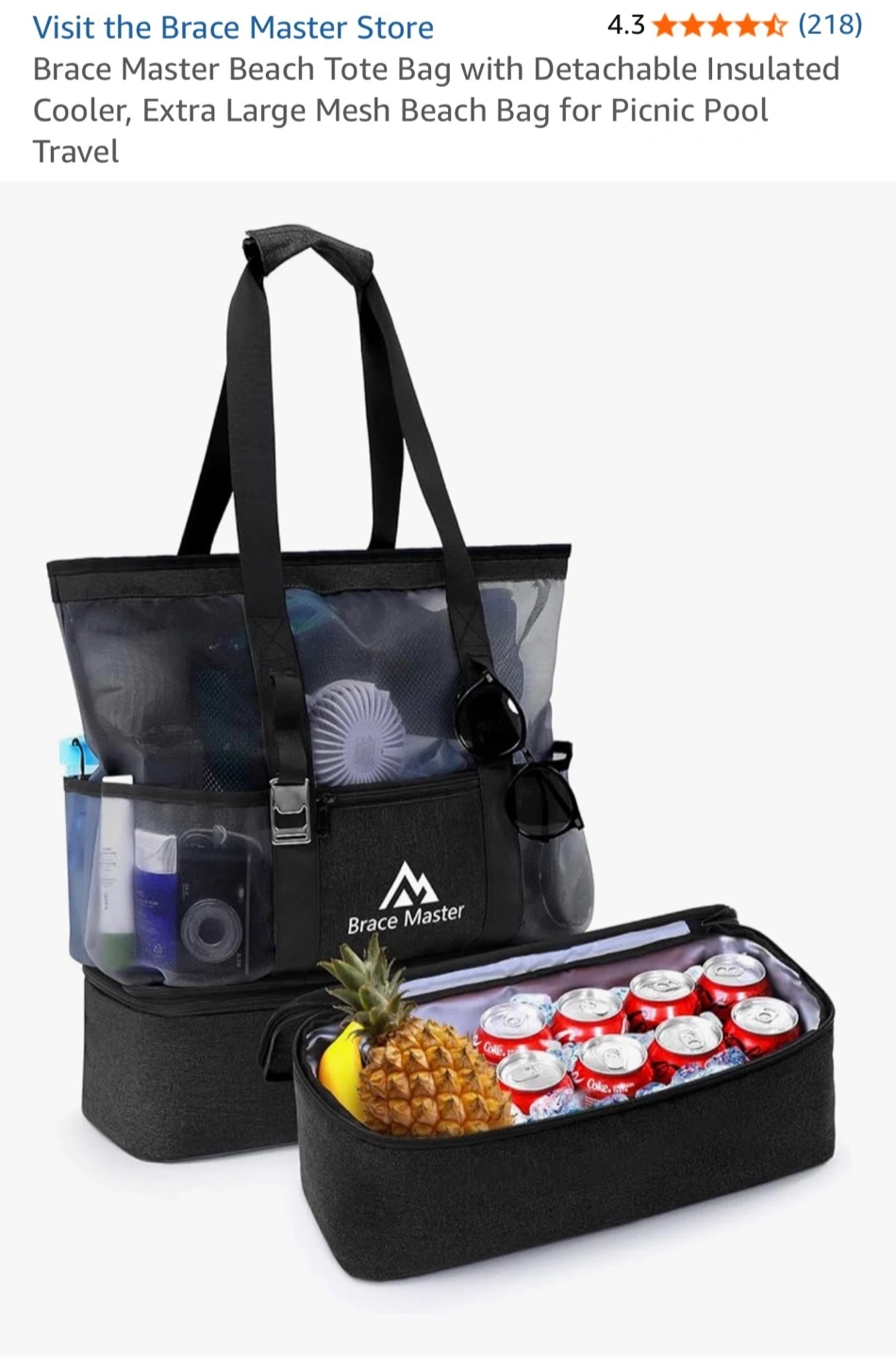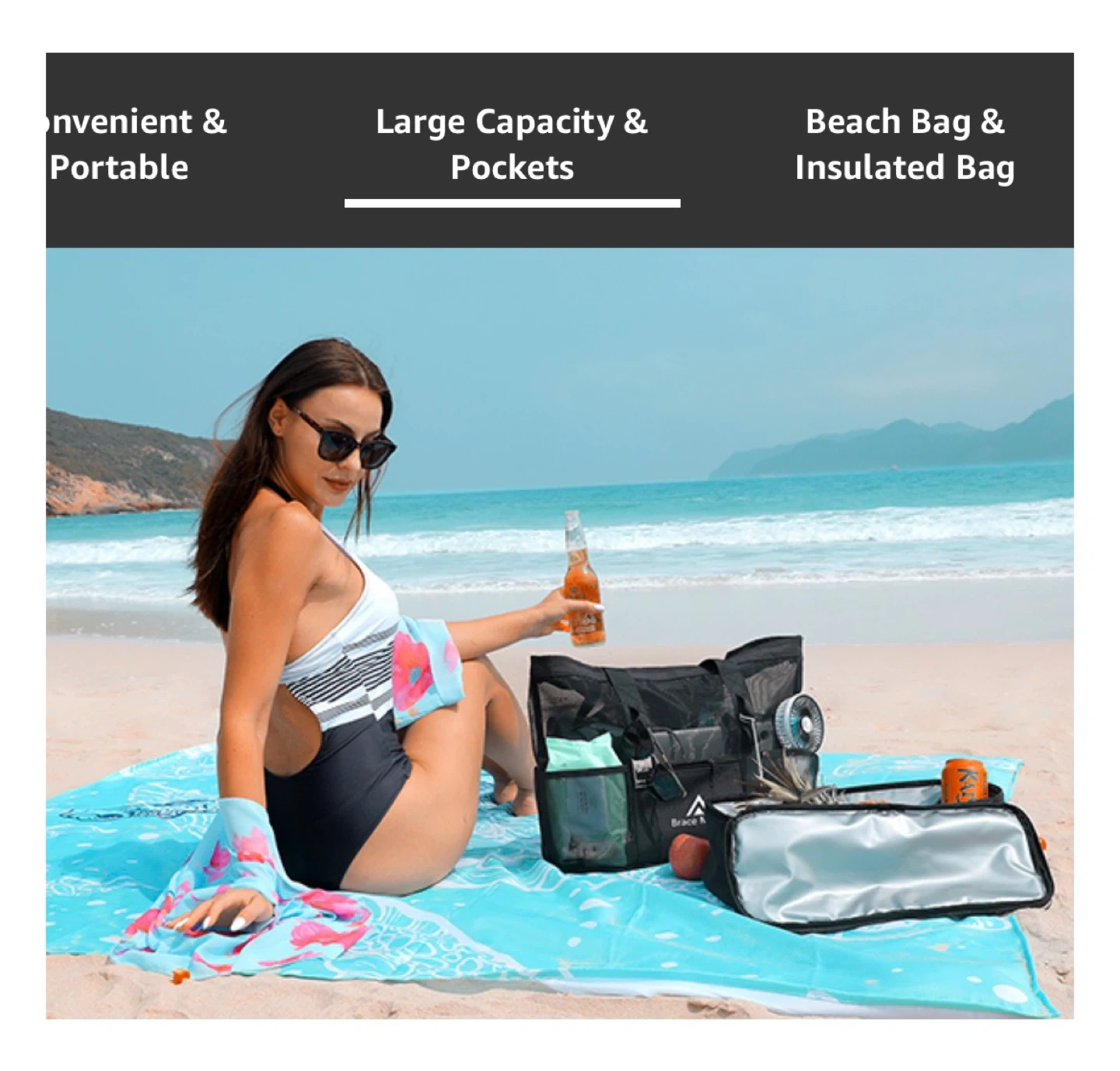 Brace Master Beach Tote Bag with Detachable Insulated Cooler