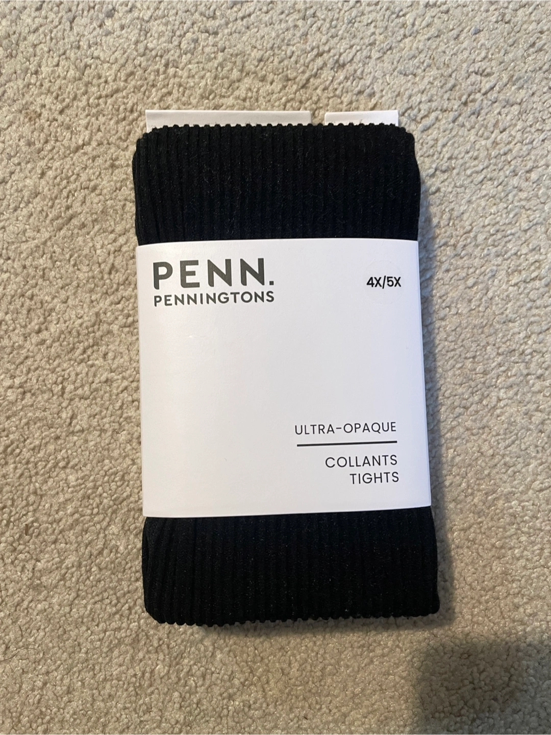 These are Penn. Penningtons ultra-opaque tights. They're a black colour and size 4X/5X. Material is made for comfort.