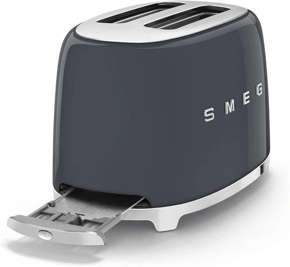 TOAST WITH STYLE: The Smeg toaster, available in the 2-slot 2 slice version TSF01 is the perfect morning assistant, packing functionality and ergonomics into its aesthetically pleasing design. TWO WIDE SLOTS: Equipped with two generously sized slots, accommodating a variety of bread types and thicknesses. Toast bread, bagel, waffles and more! 6 BROWNING LEVELS: Harness the power of six distinct browning levels to achieve the perfect shade of toasty goodness. 3 PRESETS: Operate your toaster with ease using the stylish chrome knob, boasting four convenient functions: Reheat, Defrost, Cancel, and Bagel. Bagel function allows you to toast one side only! UNIFORM BROWNING: Our self-centering racks ensure uniform browning by securely holding your toast upright during the toasting process. EASY TO CLEAN: Featuring a removable stainless-steel crumb tray for hassle-free maintenance, keeping your countertop pristine.