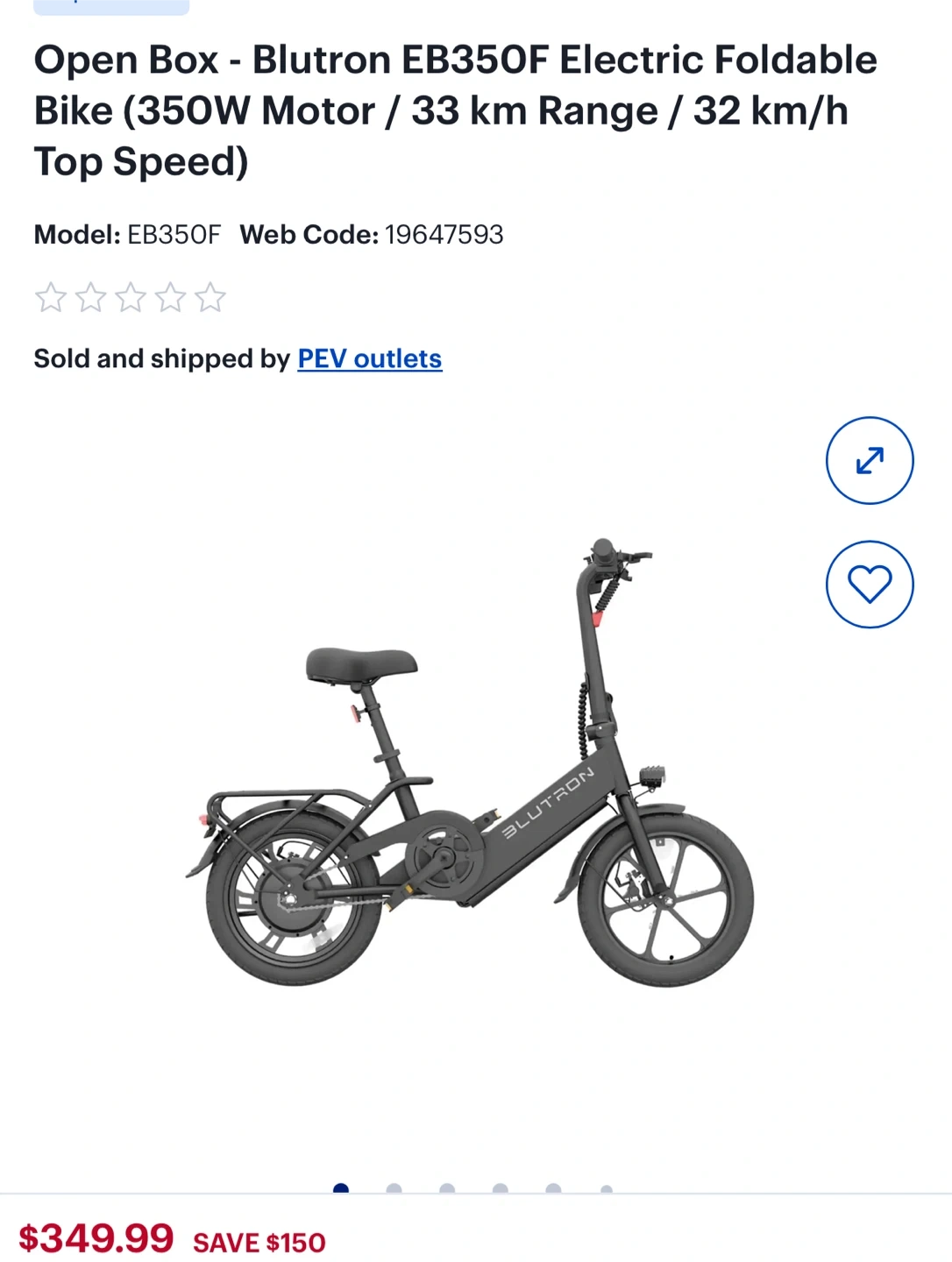This is an used Blutron EB350F electric foldable bike. It has a 350W motor, offering a 33 km range and a top speed of 32 km/h. The bike is foldable, making it convenient for storage and transport.