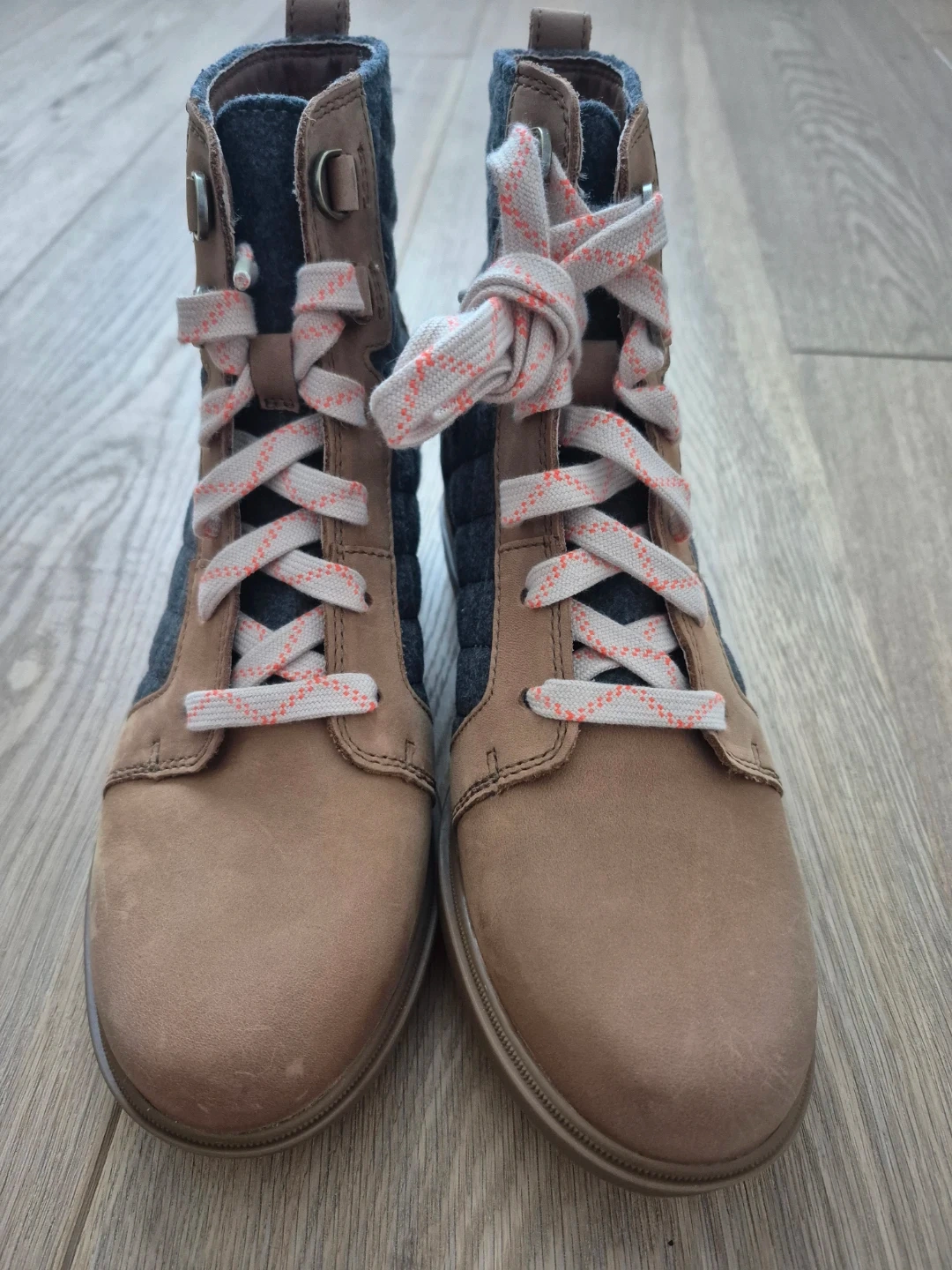 UPPER: Available in waterproof full grain leather and canvas or waterproof full grain leather and felt combination. Lace closure. Heel pull tab. Textile lining.