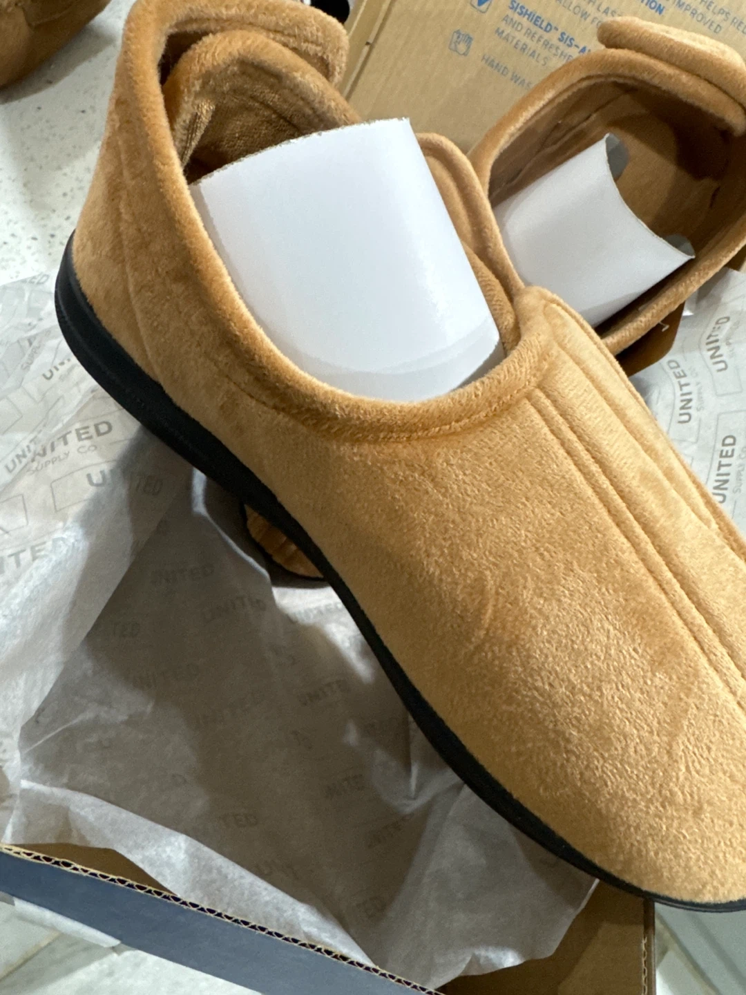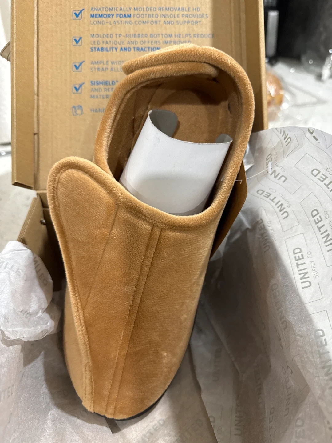 Comfortable brown velvet slippers for men. Features anatomically molded, removable memory foam insoles for support. Molded TPR-rubber bottom provides stability and traction. A great choice for lounging at home!