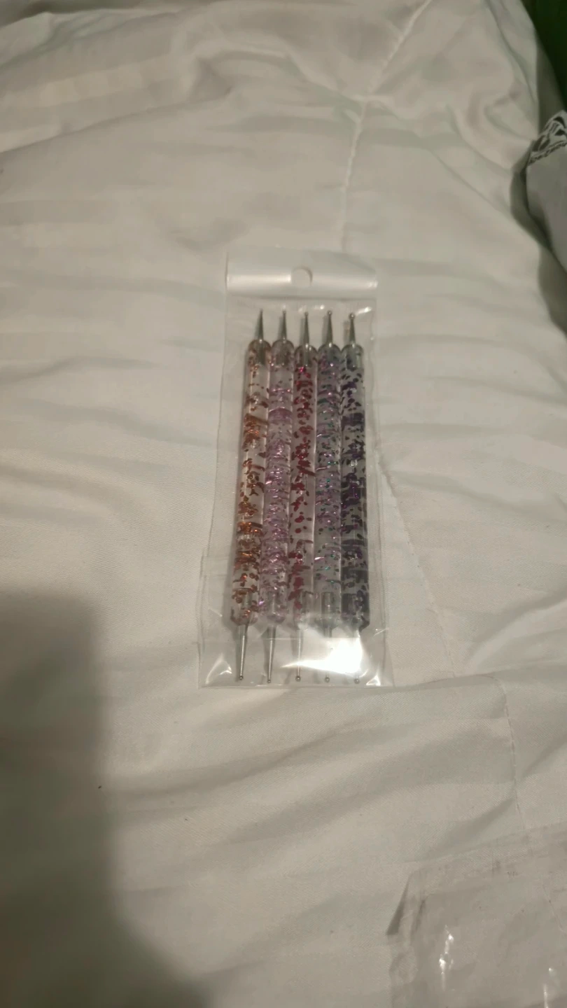 Includes dotting tools and various nail art brushes. Also comes with wooden cuticle sticks and a metal cuticle pusher. Great for detailed nail designs!
