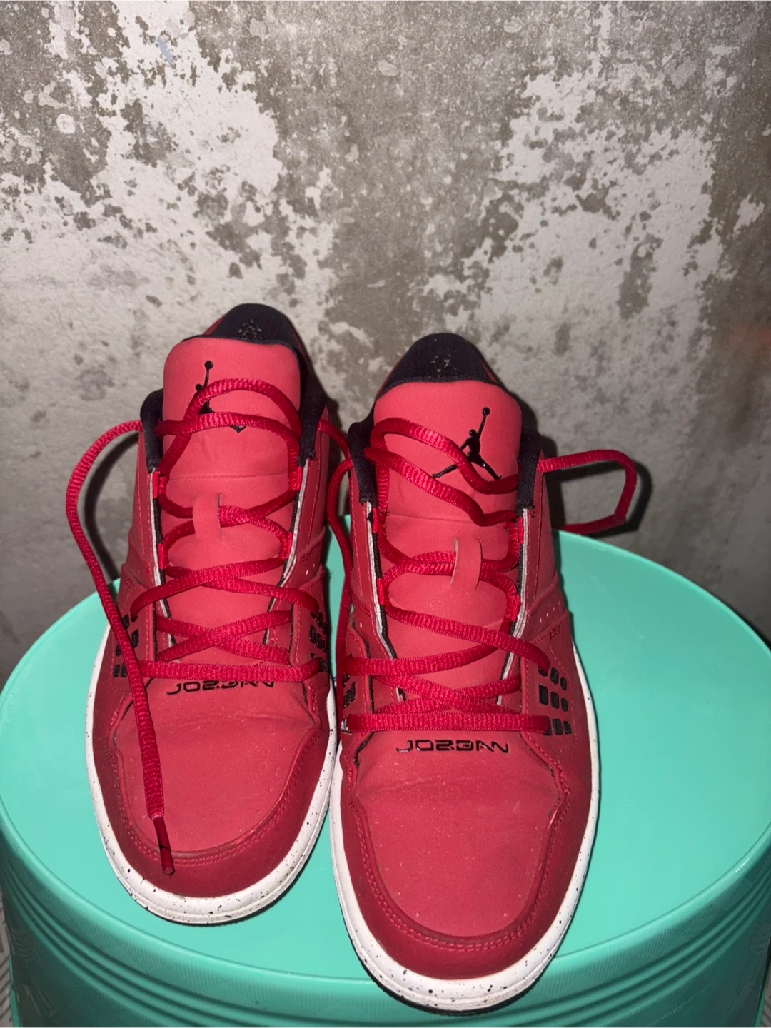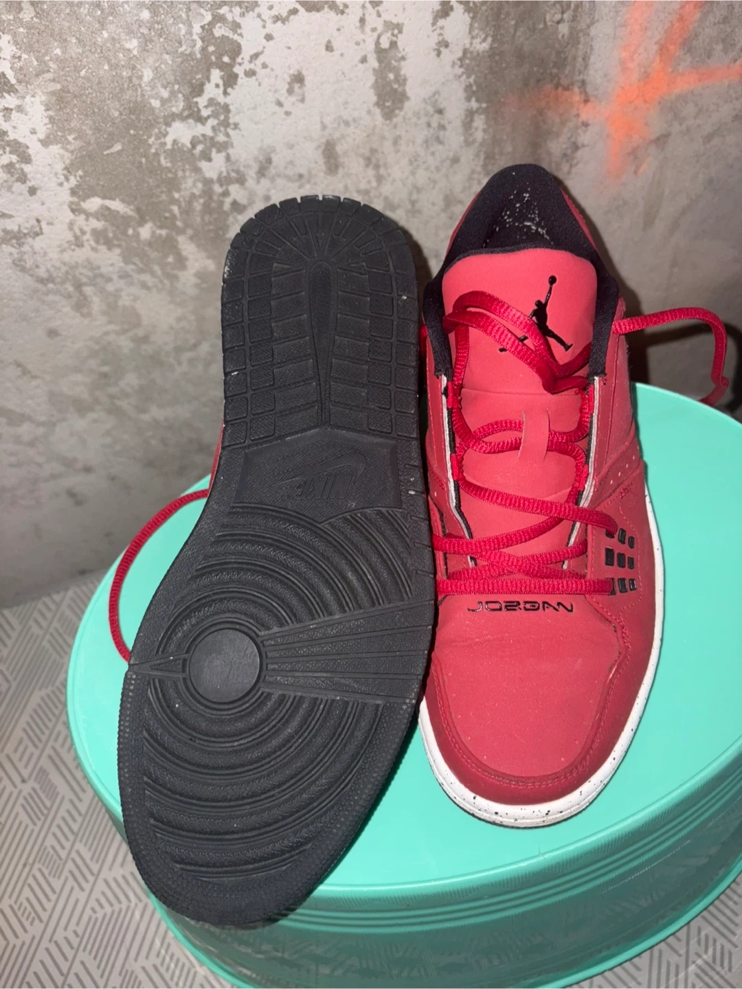 These are red Jordan sneakers. They feature a lace-up closure and a rubber sole. A classic choice for casual wear!