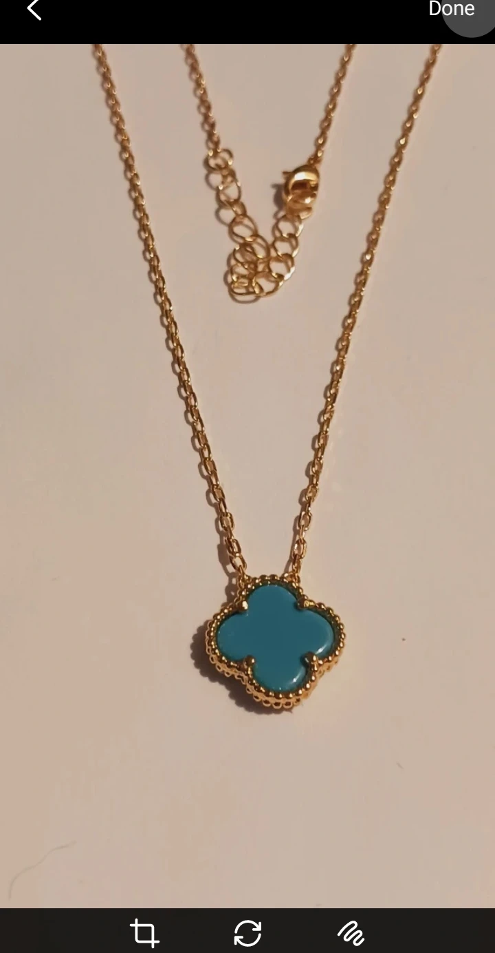 New !! 14K Gold Plated Blue Clover 🍀 Pendant necklace. Itl features a teal clover 🍀 charm. It's a delicate piece with a link chain and adjustable clasp. New !! 16" long. ALL MY PRICES ARE NEGOTIABLE !!
