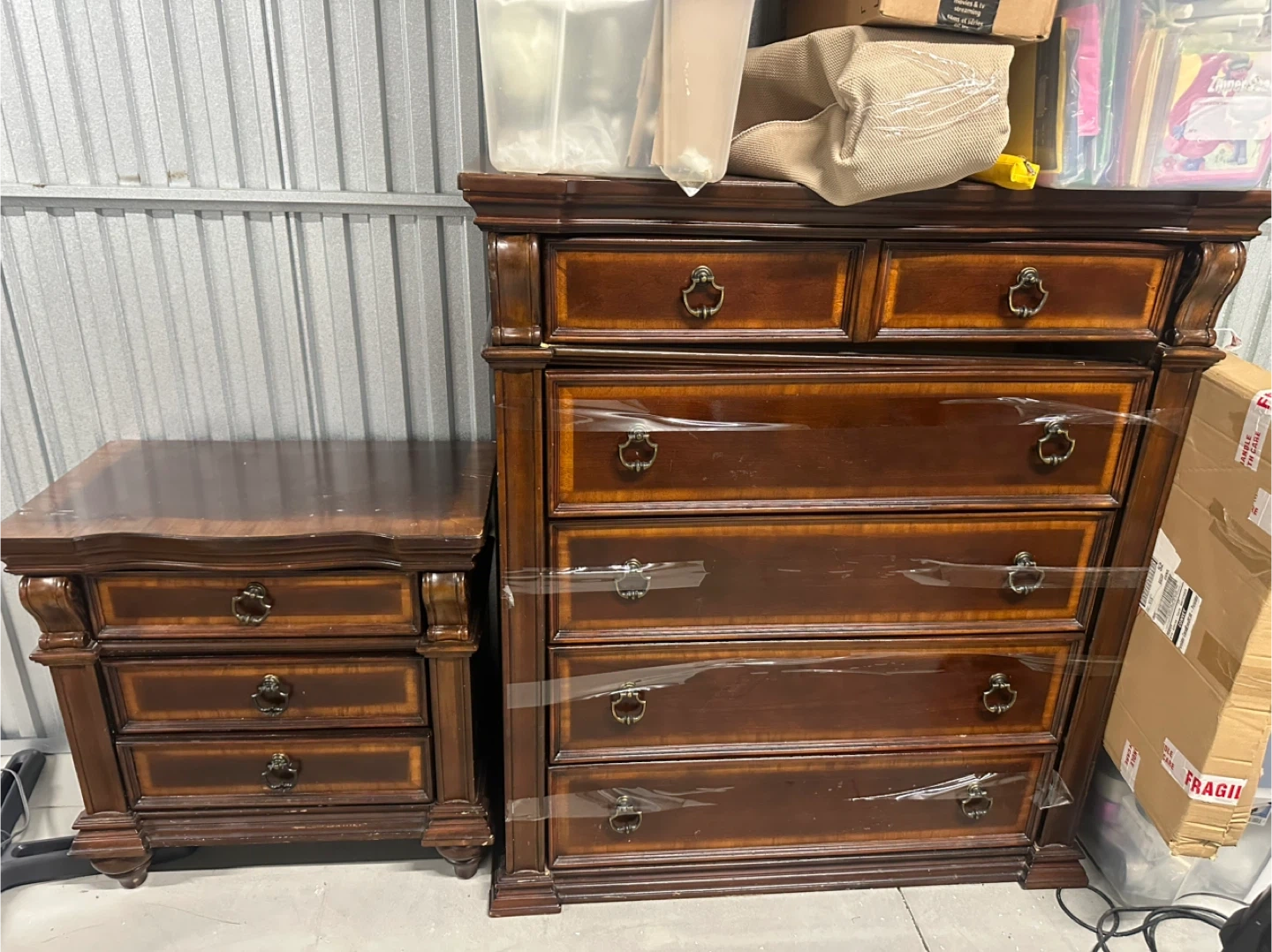 FREE!!!!! Classic dark wood dresser with 6 drawers and matching 3-drawer nightstand. This set offers ample storage space for your bedroom. Pick up is at Morningside and Shepherd in Scarborough $30 each or 50 for both