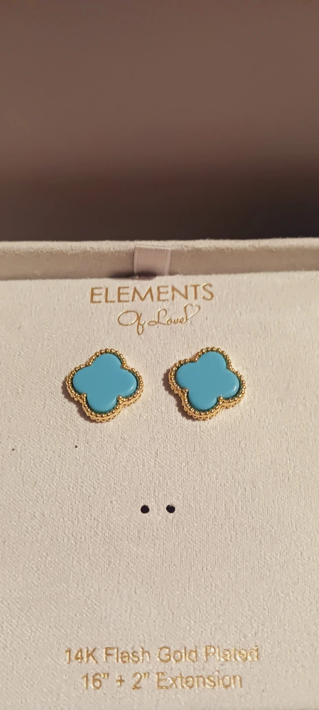 π βοΈ clover-shaped earrings with a turquoise inlay. They feature 14K flash gold plating. Perfect for adding a pop of color to any outfit! New !! ALL MY PRICES ARE NEGOTIABLE !! NIB !! NEW IN ORIGINAL BOX !!