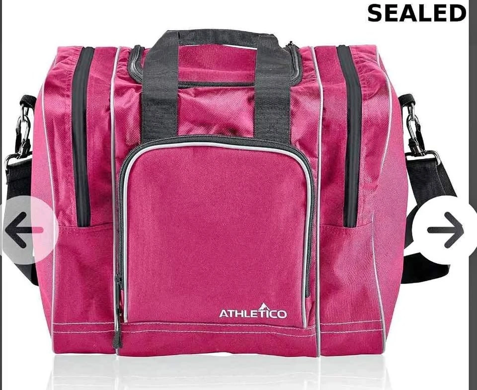 Athletico bowling bag for a single ball. Features a padded ball holder and fits a single pair of bowling shoes up to men's size 14. Pick up in Hamilton, Oakville, or Mississauga.