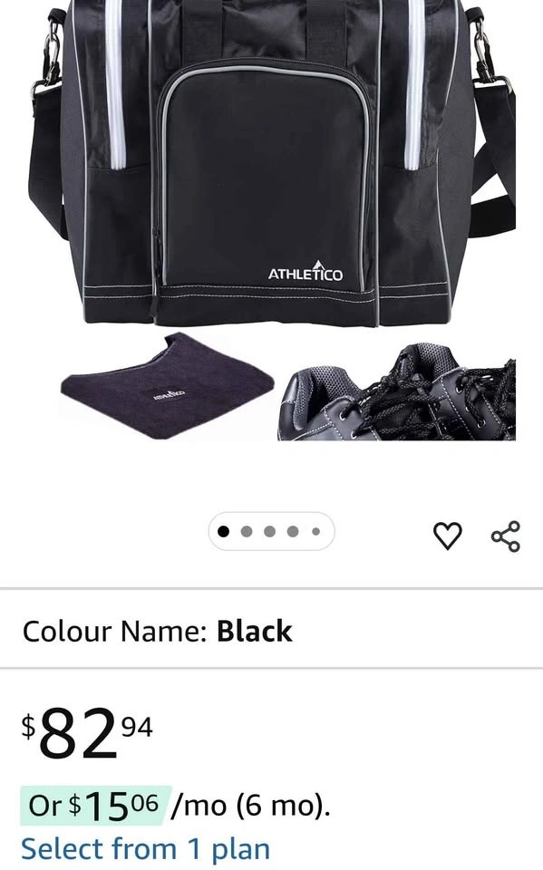 Athletico bowling bag and seesaw polisher bundle. Single ball tote bag with padded ball holder. Fits a single pair of bowling shoes up to men's size 14. Black color. Pick up in Hamilton, Oakville, or Mississauga.